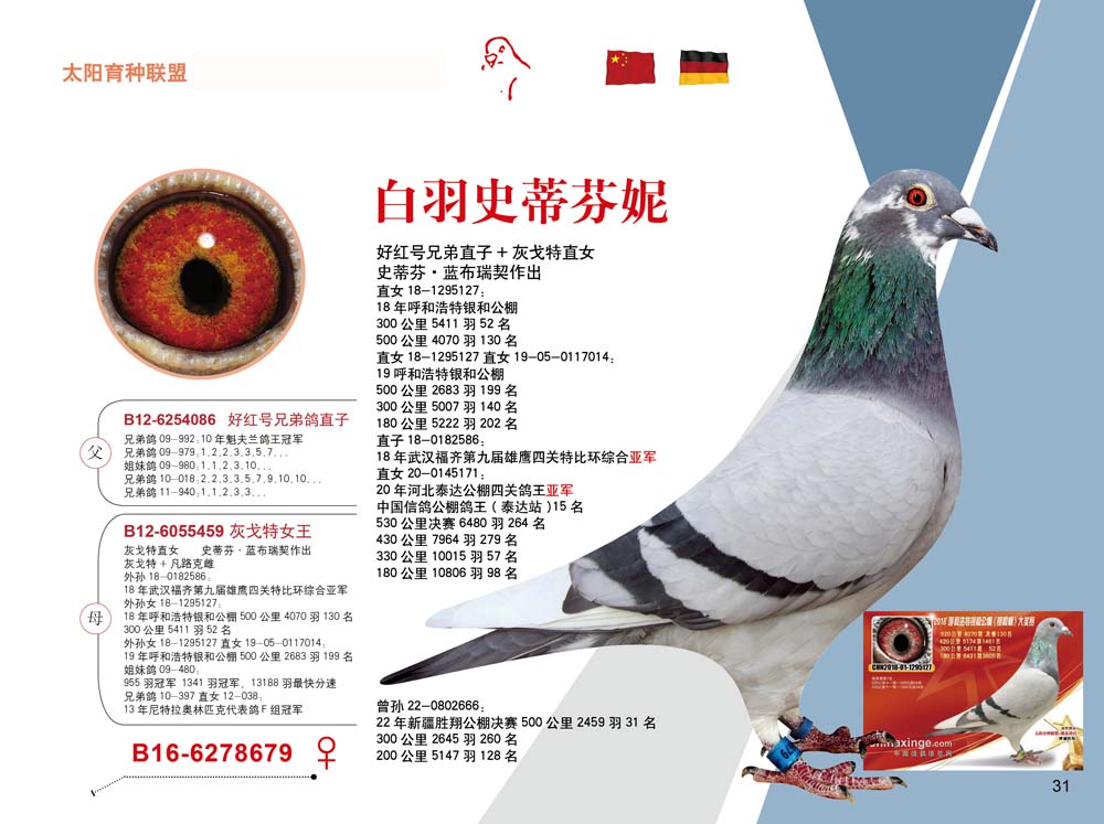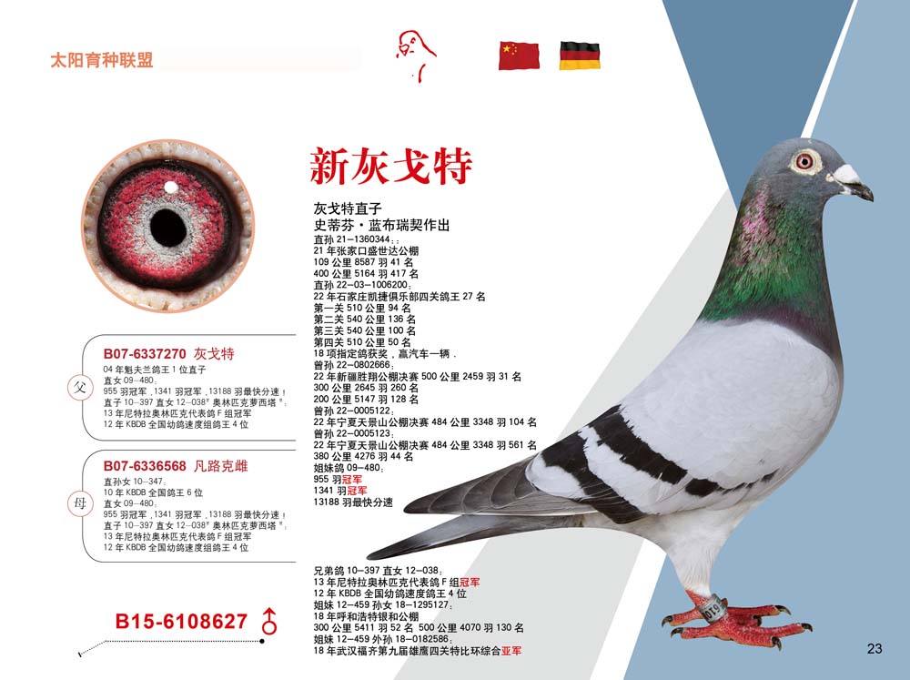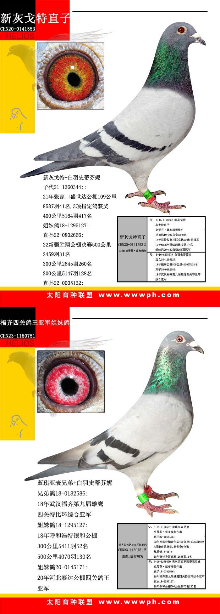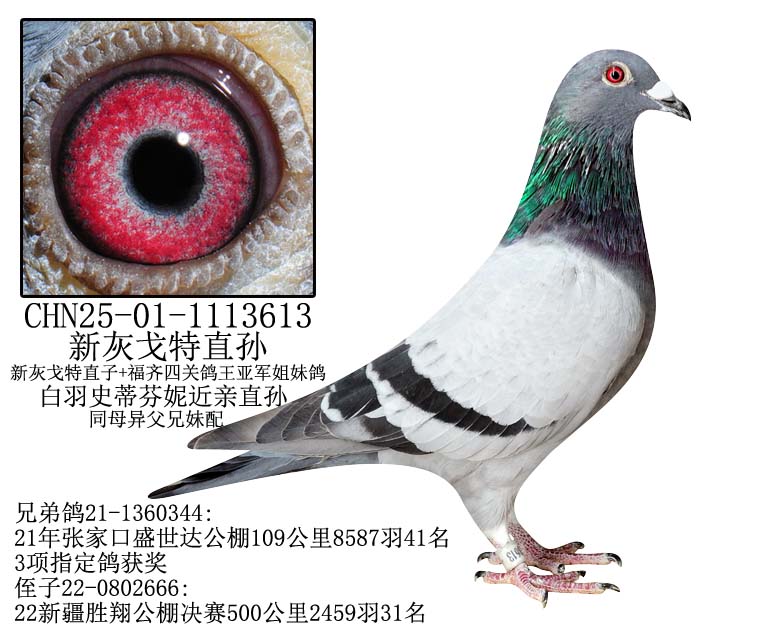 母:CHN23-1180751 福齐四关鸽王亚军姐妹鸽