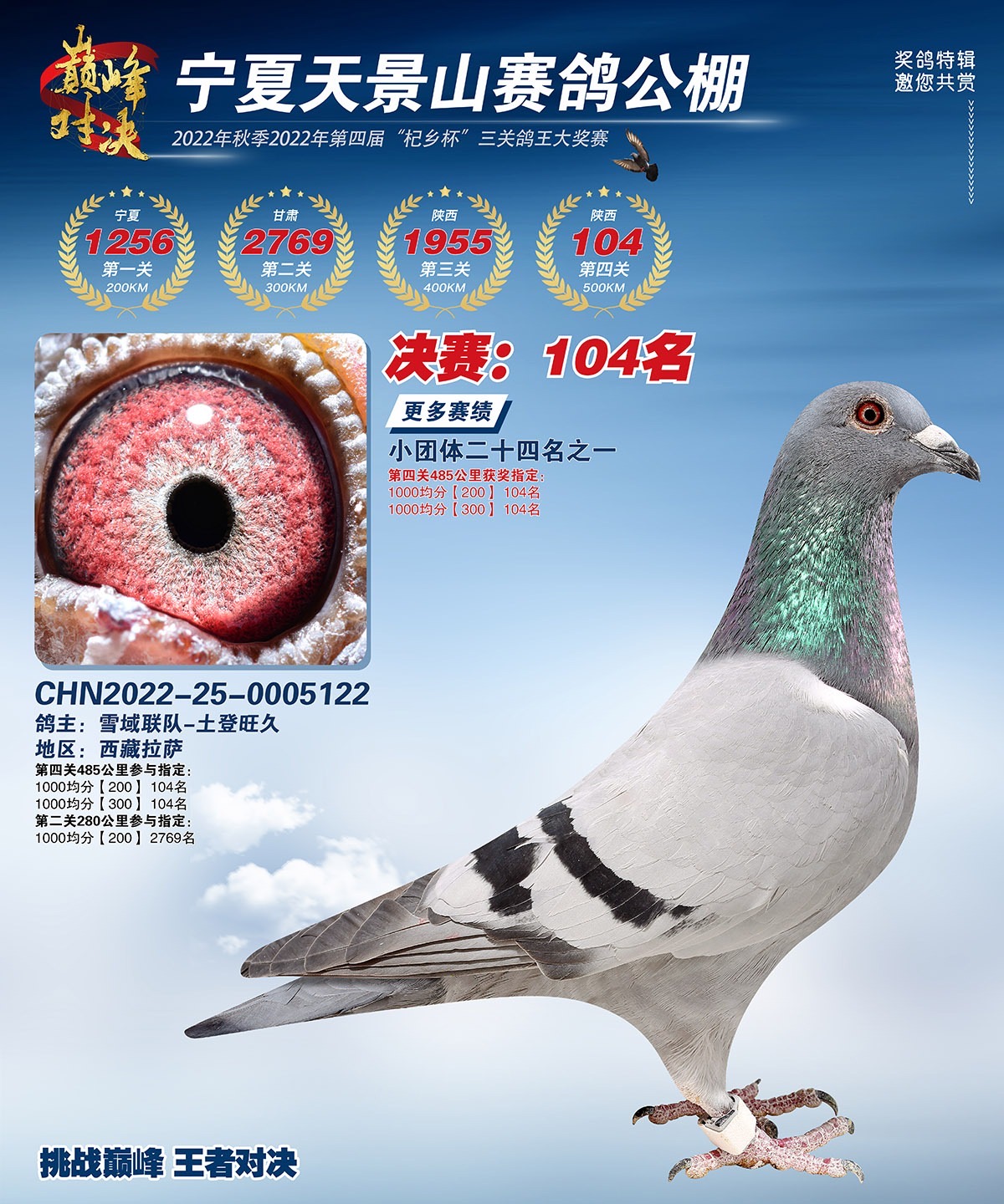 22年宁夏天景山公棚决赛484公里3348羽104名
