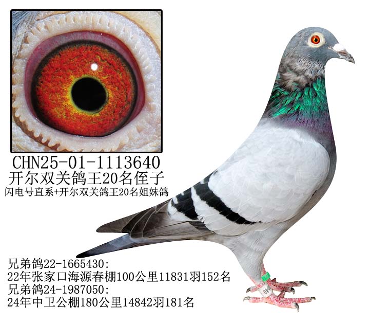母:CHN23-1180757 开尔双关鸽王20名姐妹鸽