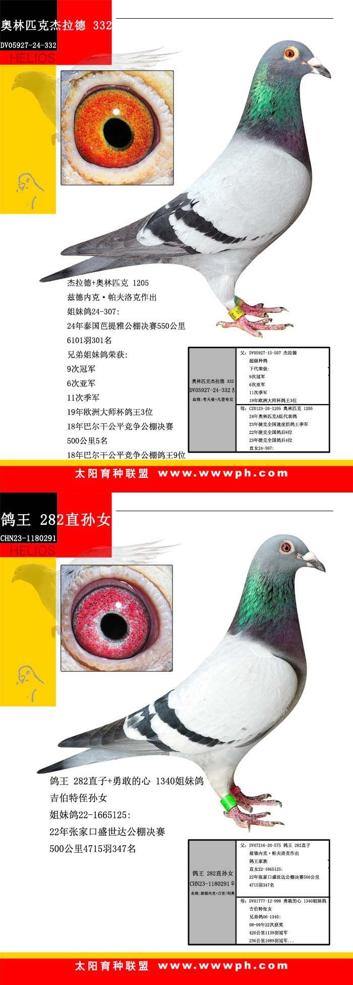 奥林匹克杰拉德 332+鸽王 282直孙女