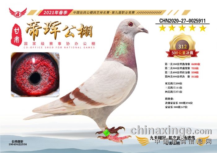 21年甘肃帝辉春棚决赛500公里2019羽312名