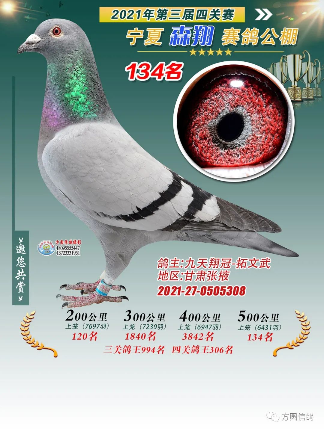 21年宁夏森翔公棚决赛500公里6431羽134名