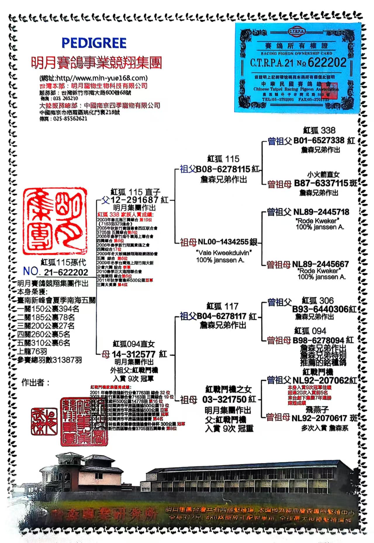 - 当前查看拍卖鸽:台湾明月做出红狐115系本身五关参赛31