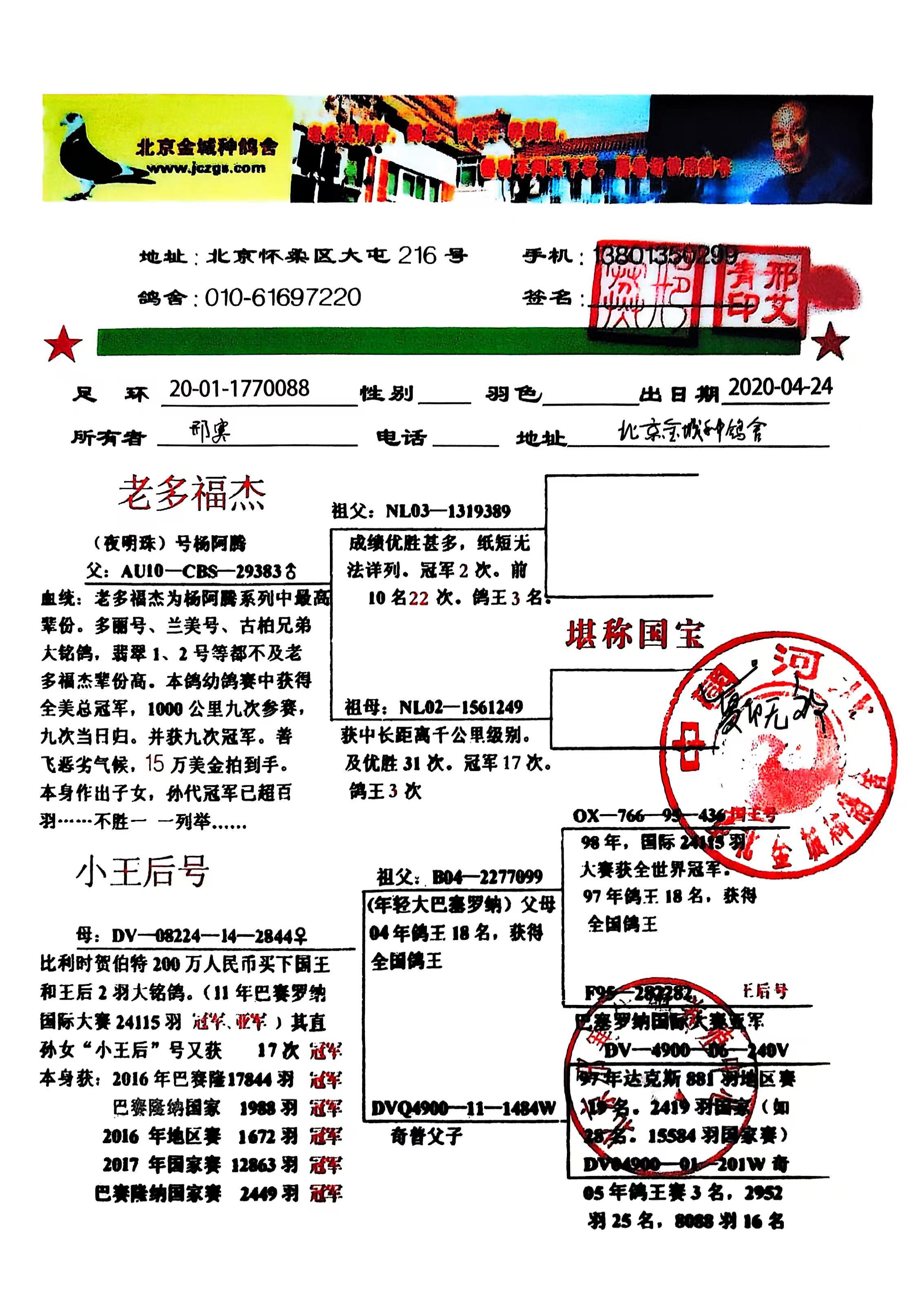 全国一律发快递,新疆一次200、<br><br>运费一次100元、两只一箱、<br><br>手机 微信 同步:19930703933<br><br>※拍卖鸽筛简要说明,体现严格):<br><br>1.源头把控:<br>仅接受来自可信赖、有持续实战记录的鸽源。<br>2.血统核验:<br>深度核查血统信息的真实性与价值潜力。<br>3.初步筛选:<br>基于血统与家族表现的快速淘汰。<br>4.深度个体审查:<br>由教练进行多维度、细致的上手评估(如上所述)<br>5.健康观察:<br>入选鸽子需经过一段时间的隔离观察,<br> 确保其状态稳定、健康无虞。<br>6.最终上拍决策:
