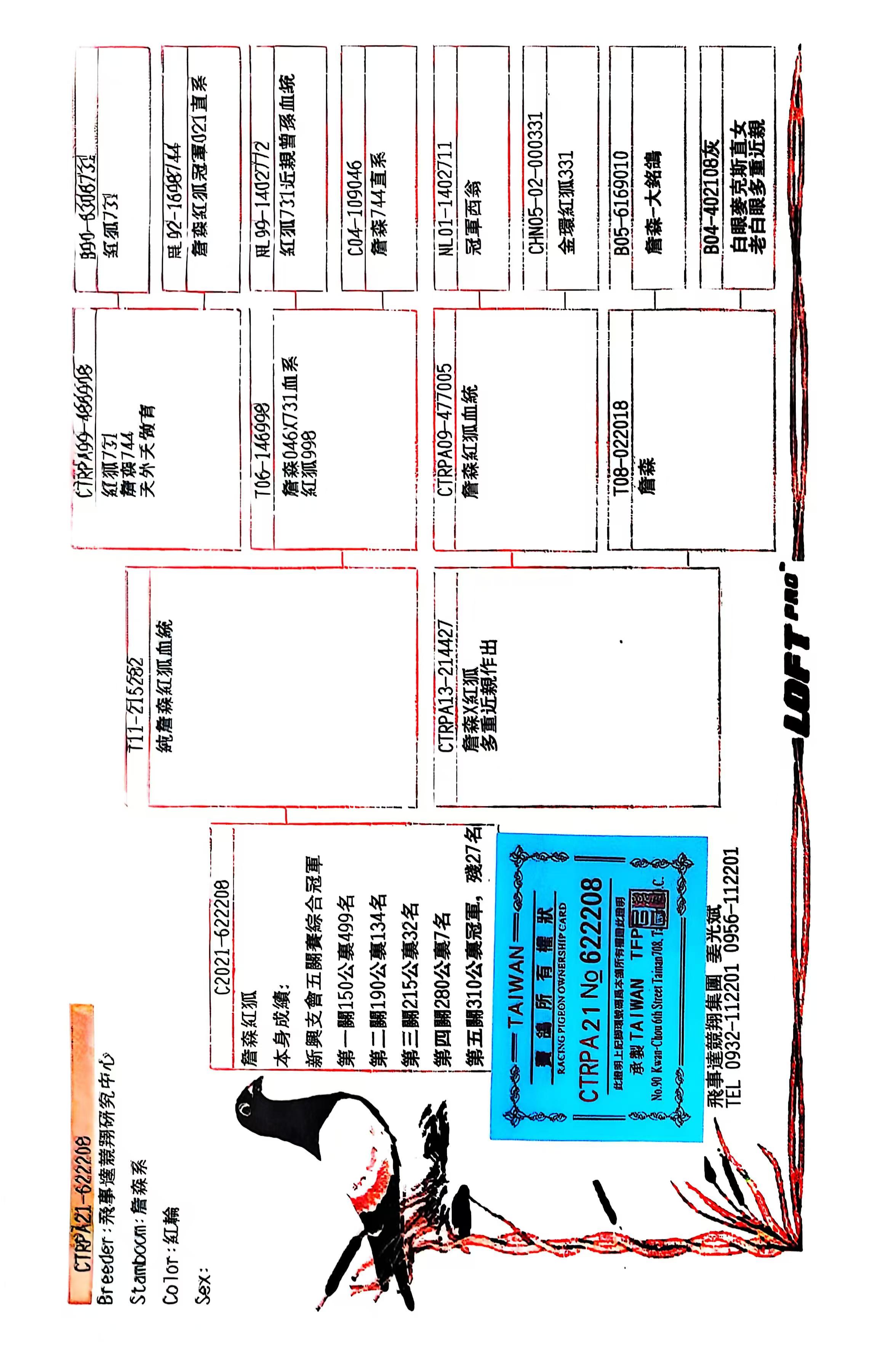 - 当前查看拍卖鸽:台湾飞事连竟翔集团詹森红狐本身五关综合冠