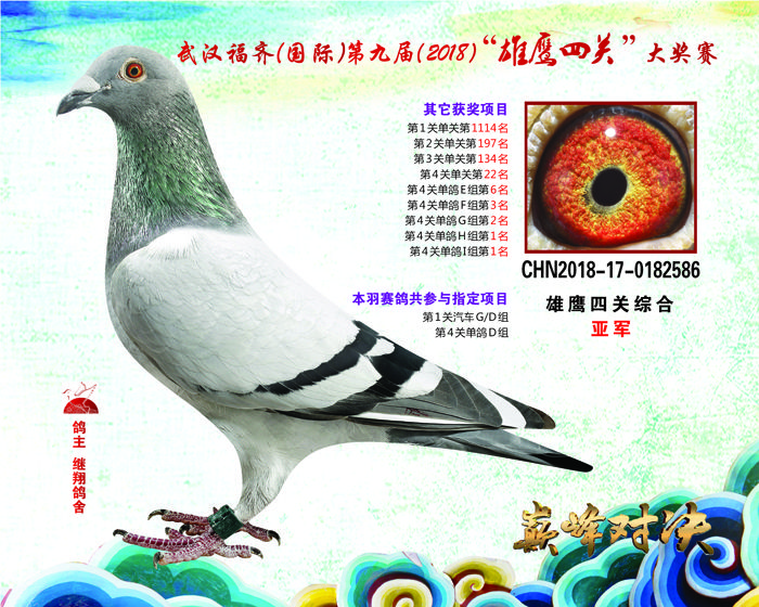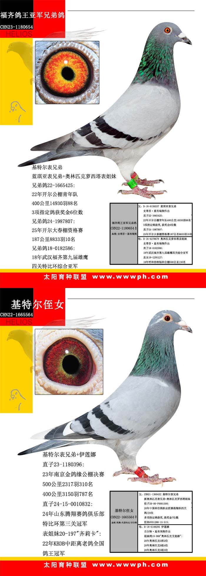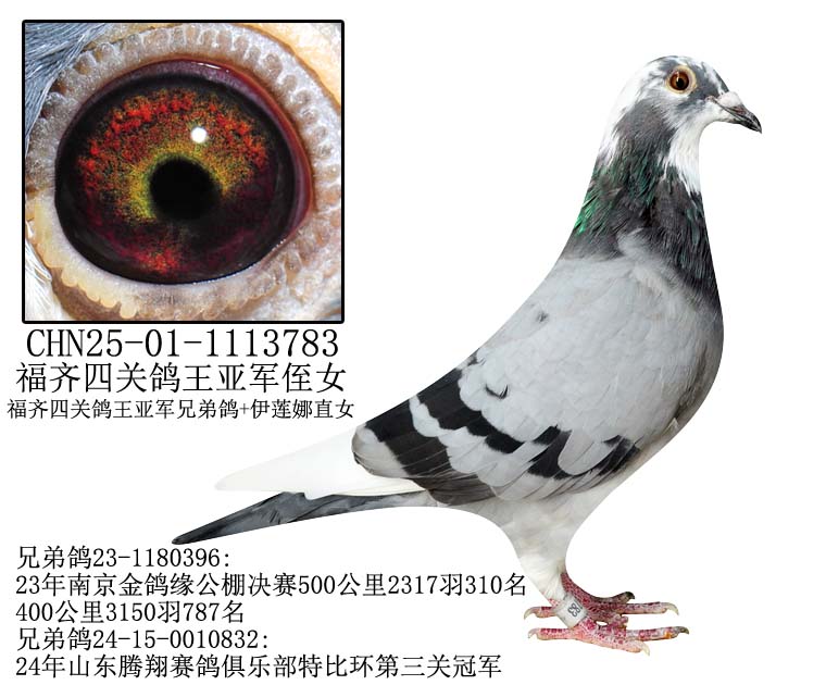 父:CHN23-1180654 福齐四关鸽王亚军兄弟鸽