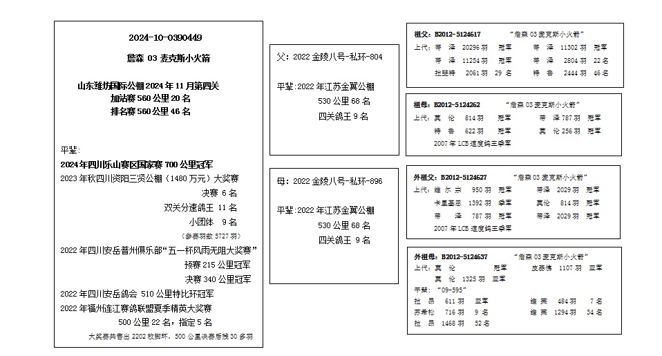 2024-10-0390449 赛绩鸽 比利时“詹森03麦克斯小火箭”
