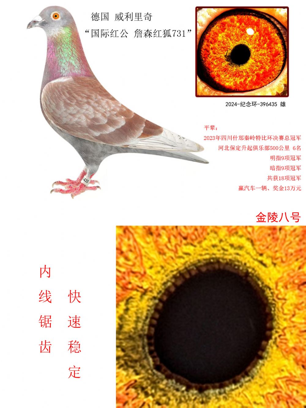 “金陵八号”鸽业再次提供“俊超”系幼鸽(由乔思托内、詹森、桑杰士、红卡多、福洛英格斯、鲁道克拉森、考夫曼、迪卢速霸龙、佛卡门、罗伯特、白衣杀手灰鹰、红公系、电脑号等组成)。