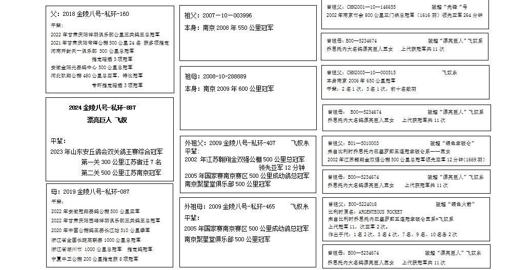 金陵八号2020年获江苏金翼公棚400公里6名,加强赛4名,精英赛冠军(飞奴)