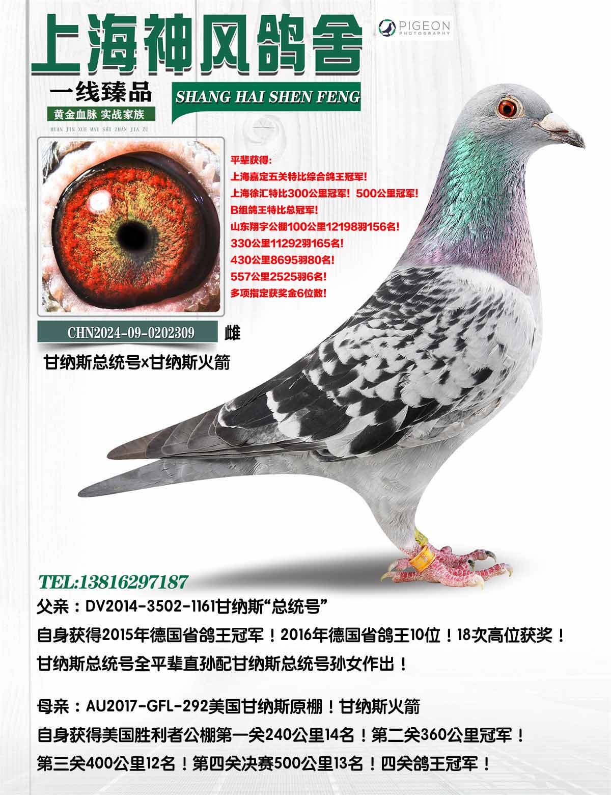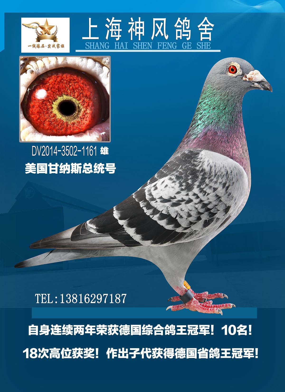 甘纳斯总统号全平辈直孙配甘纳斯总统号孙女作出!直接作出德国鸽王冠军!德国450公里冠军!