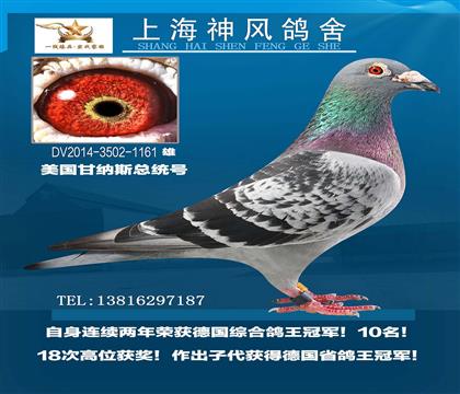 作为世界最伟大的超级种鸽之一,“总统号”作出的40多羽基础种鸽在比利时、荷兰、美国、中国等4个国家超级发挥,所获冠军、高位入赏不计其数!如: