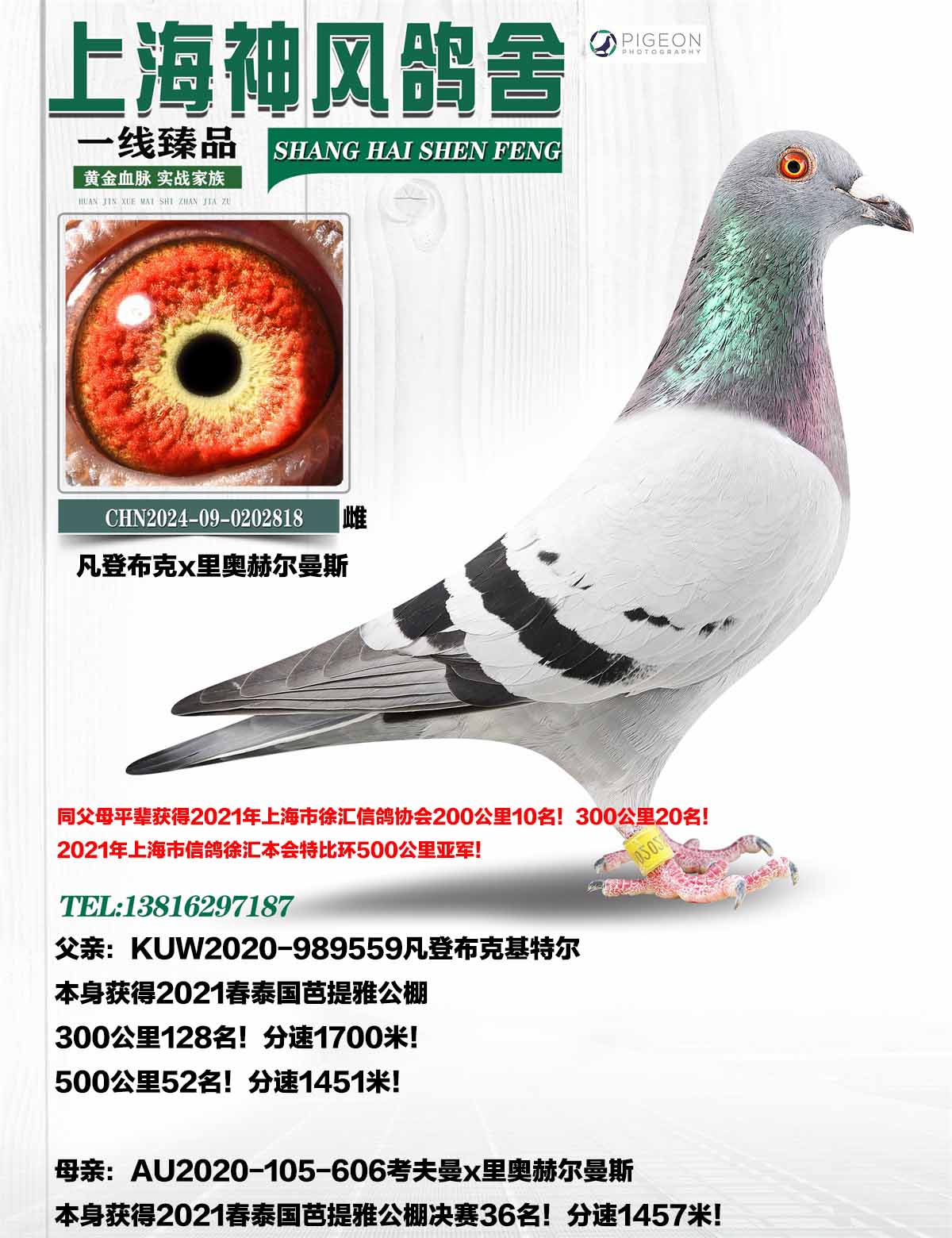 2021年上海市信鸽徐汇本会特比环500公里亚军!