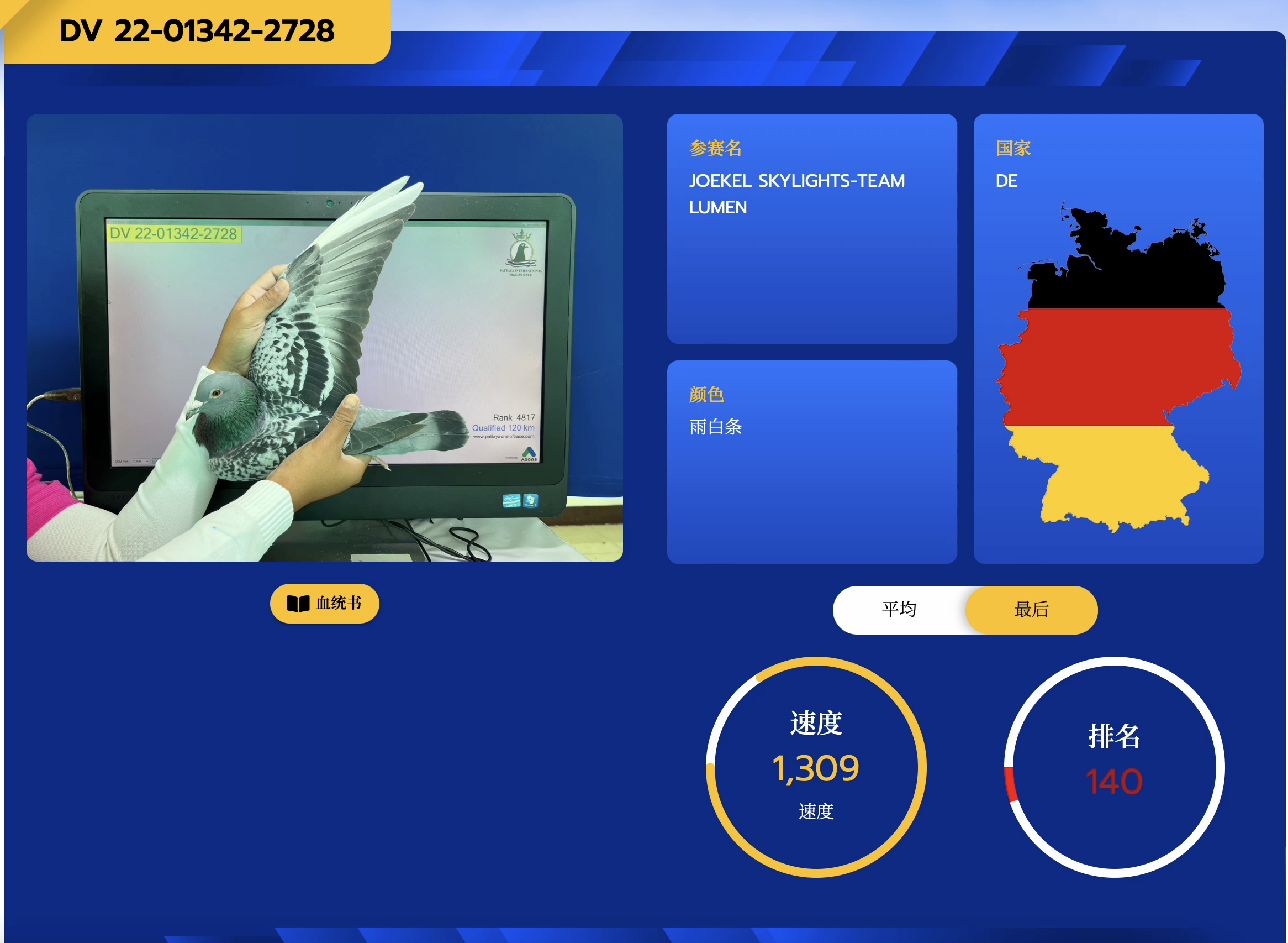 1596520 | 甘纳斯鸽王冠军配对 | ¥1000元 | 0次 |