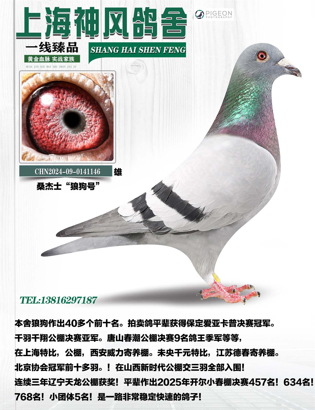 本舍狼狗作出40多个前十名。拍卖鸽平辈获得保定爱亚卡普决赛冠军。千羽千翔公棚决赛亚军。唐山春潮公棚决赛9名鸽王季军等等,在上海特比,公棚,西安威力寄养棚。未央千元特比,江苏德春寄养棚。北京协会冠军前十多羽。!在山西新时代公棚交三羽全部入围!连续三年辽宁天龙公棚获奖!平辈作出2025年开尔小春棚决赛457名!634名!768名!小团体5名!是一路非常稳定快速的鸽子!