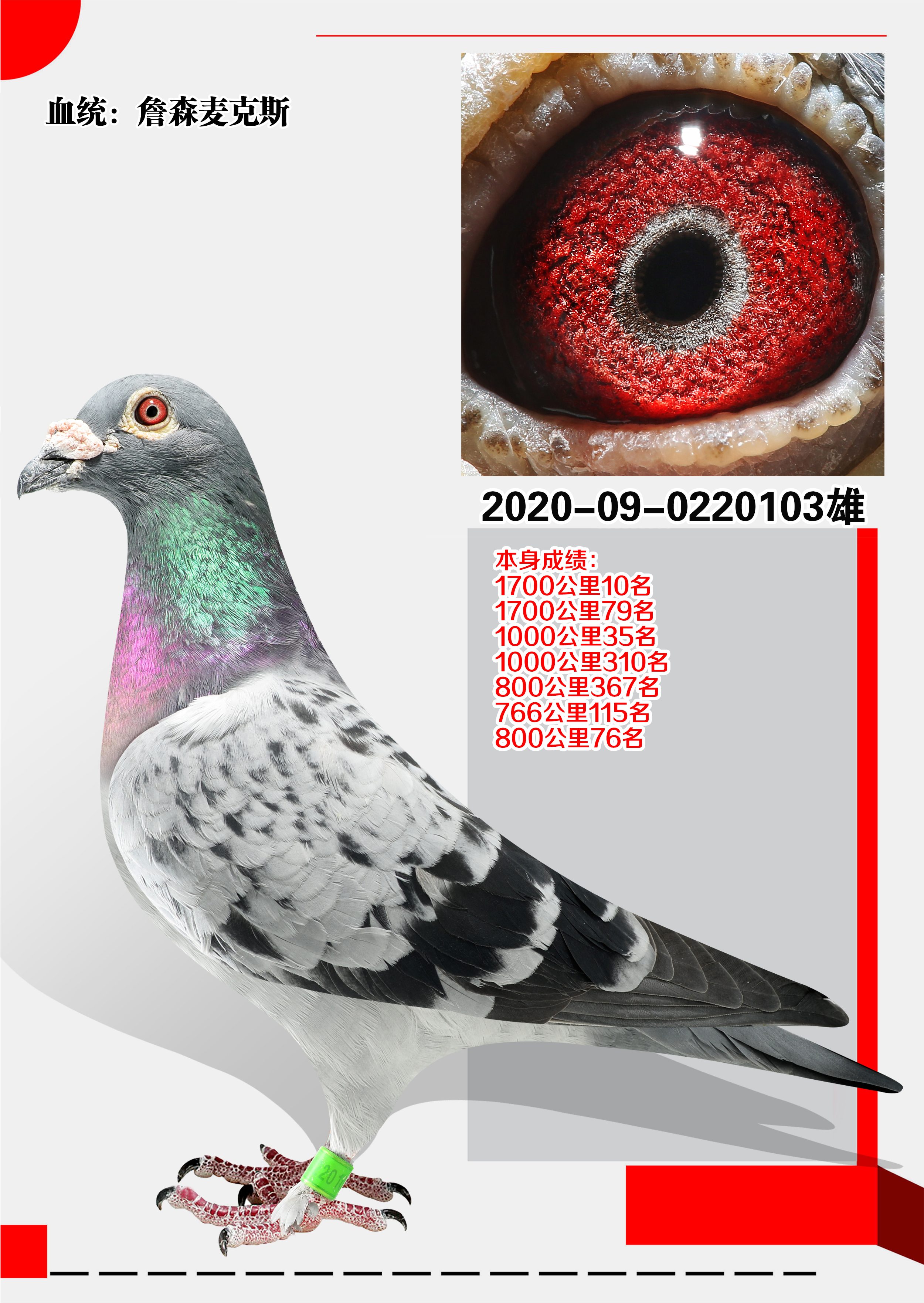 - 当前查看拍卖鸽:詹森麦克斯 本身成绩超长距离1700公