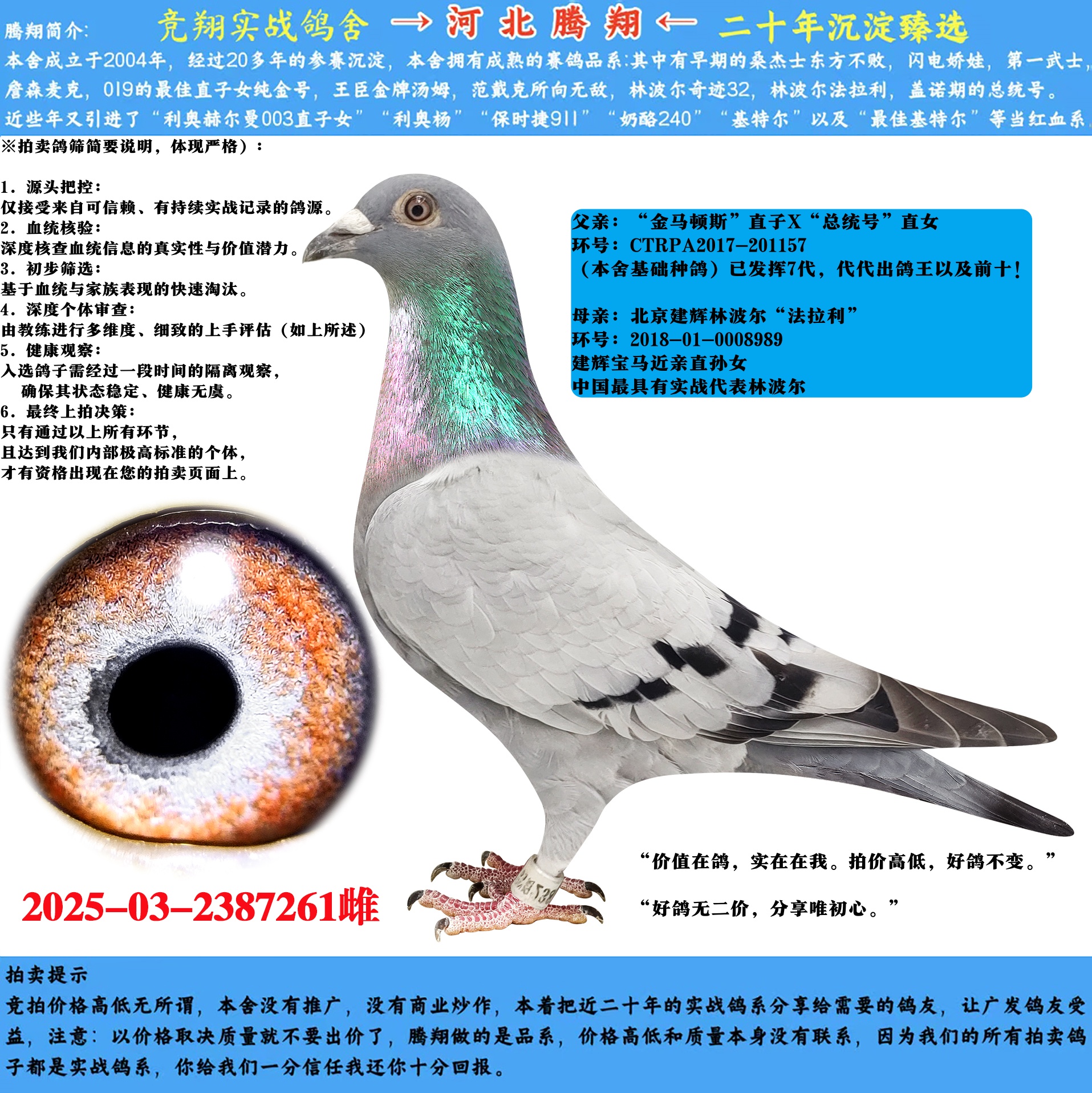 - 当前查看拍卖鸽:推荐、甘纳斯“金马顿斯”直子X“总统号”