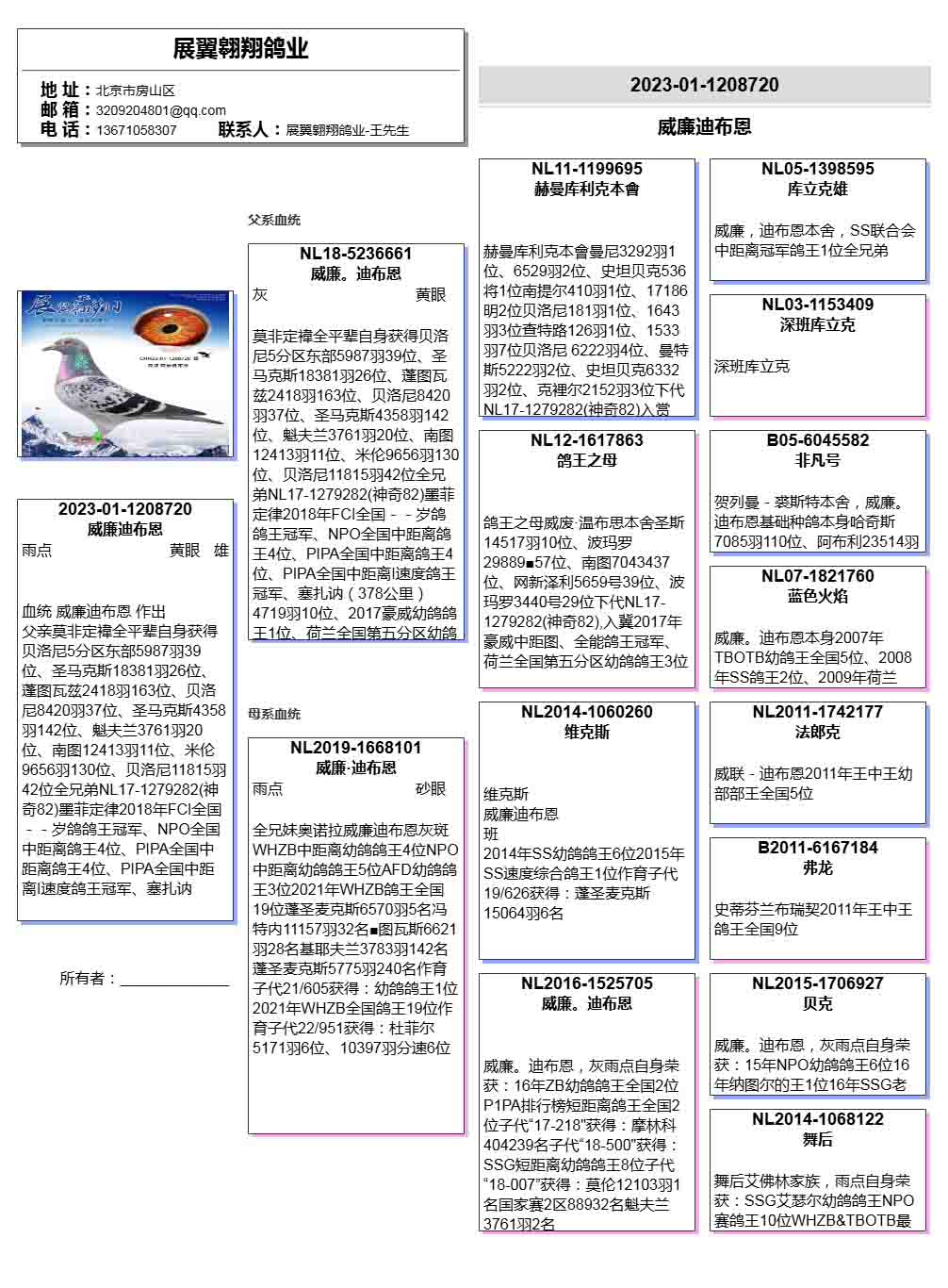 所有拍卖种鸽作育一切正常,因换环境不保作育~!