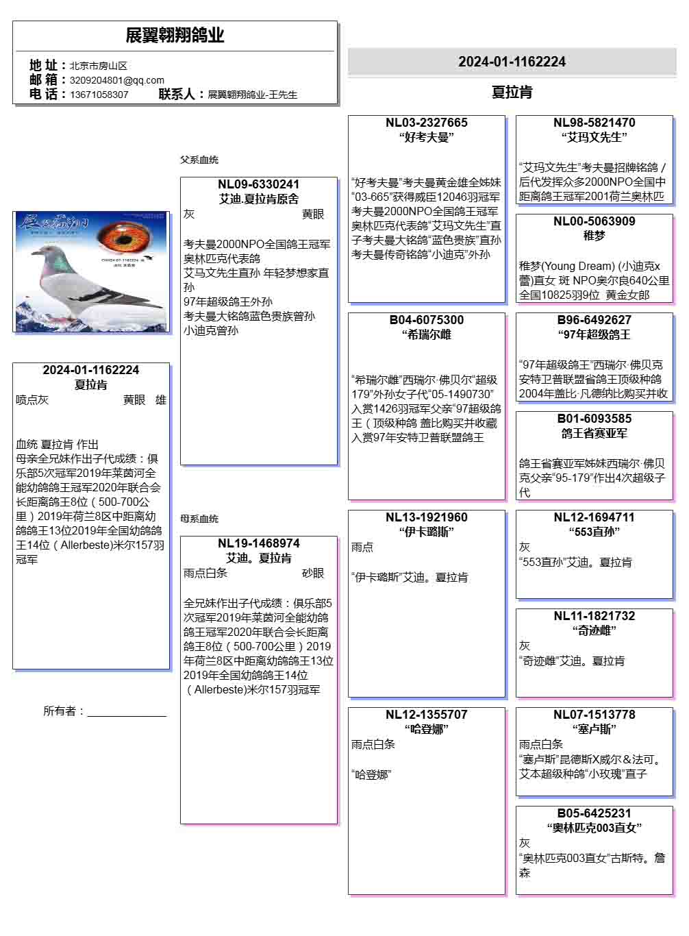 - 当前查看拍卖鸽:37万配对作出鸽王夏拉肯224