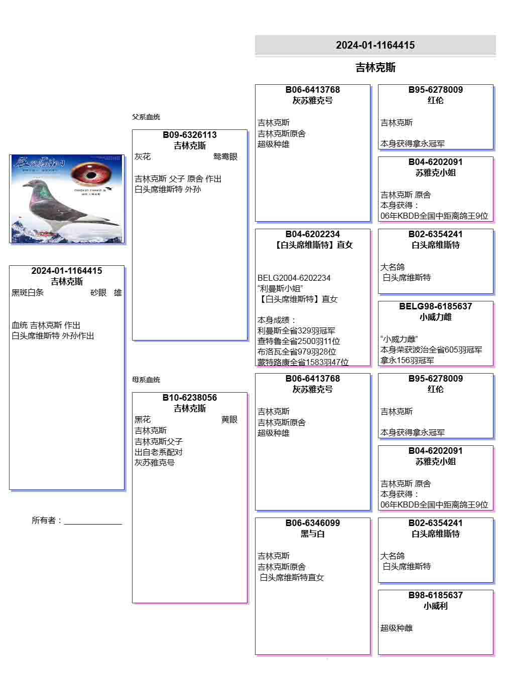 1596798 | 利奥两大速度鸽系相碰新罗西独眼雌配欧元作出127 | ¥300元 | 0次 |