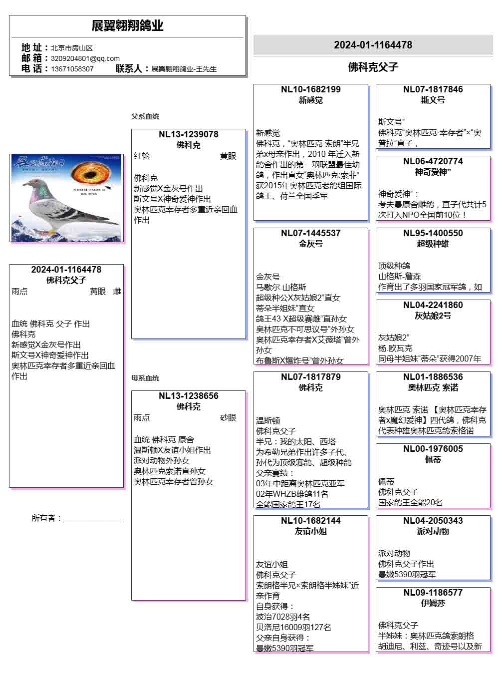 所有拍卖种鸽作育一切正常,因换环境不保作育~!