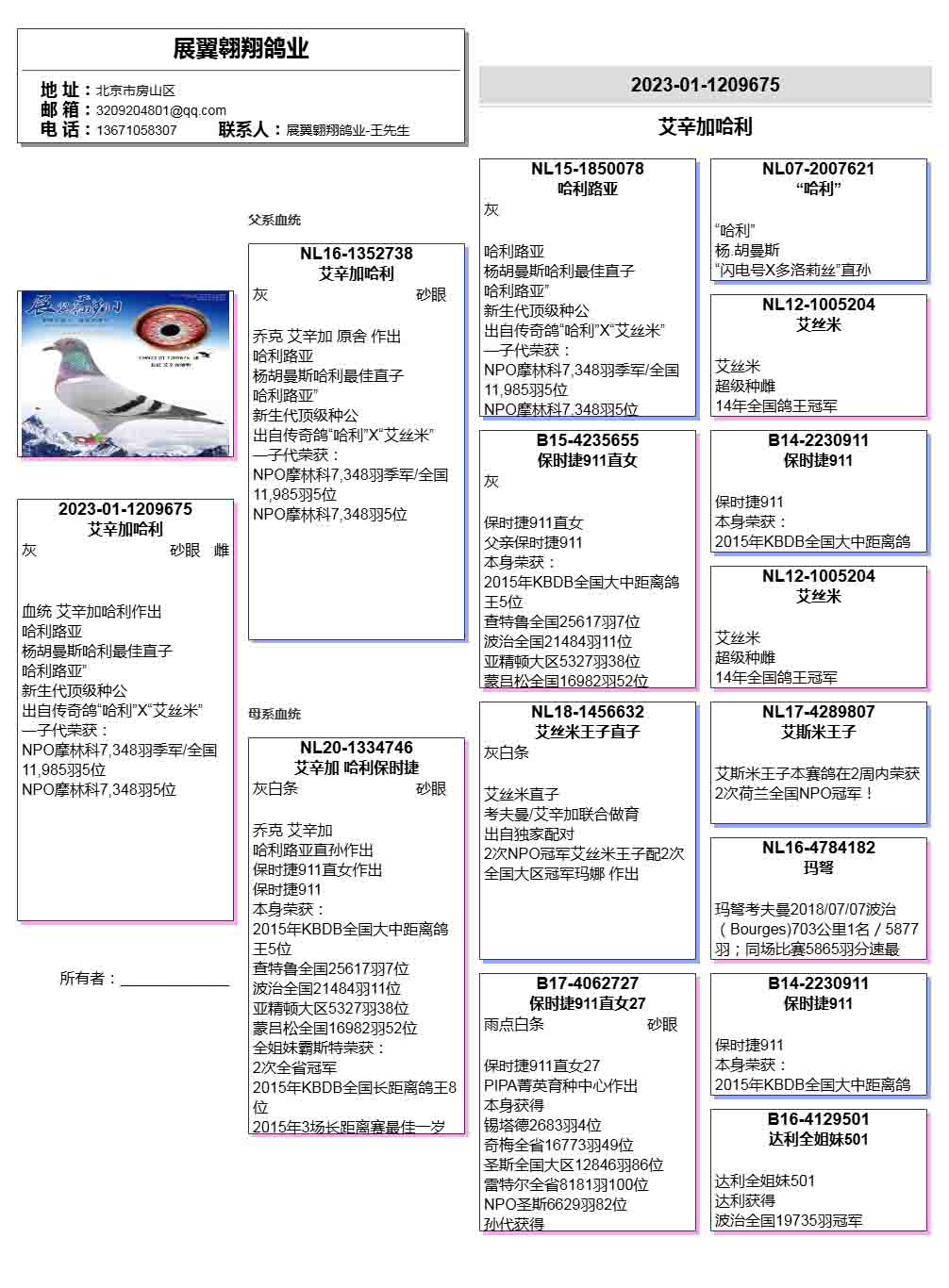 - 当前查看拍卖鸽:艾辛加哈利路亚直子配艾斯米王子直孙女作出