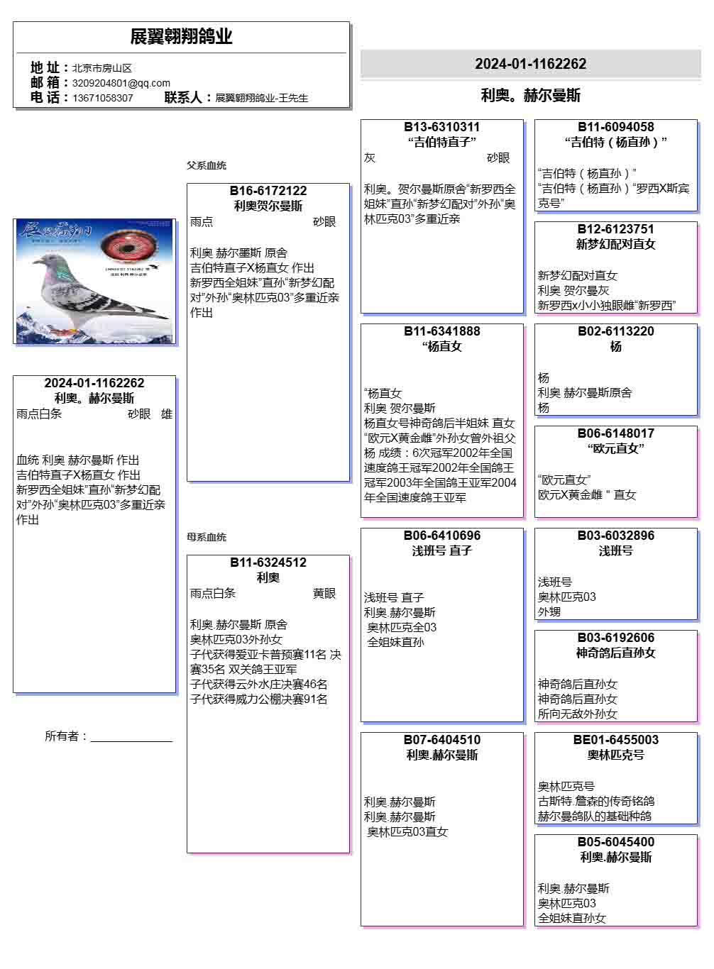 - 当前查看拍卖鸽:利奥吉伯特直孙配奥林匹克003外孙女作出