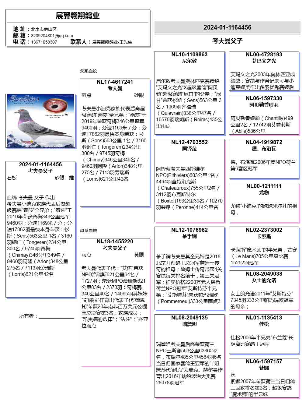 所有拍卖种鸽作育一切正常,因换环境不保作育~!
