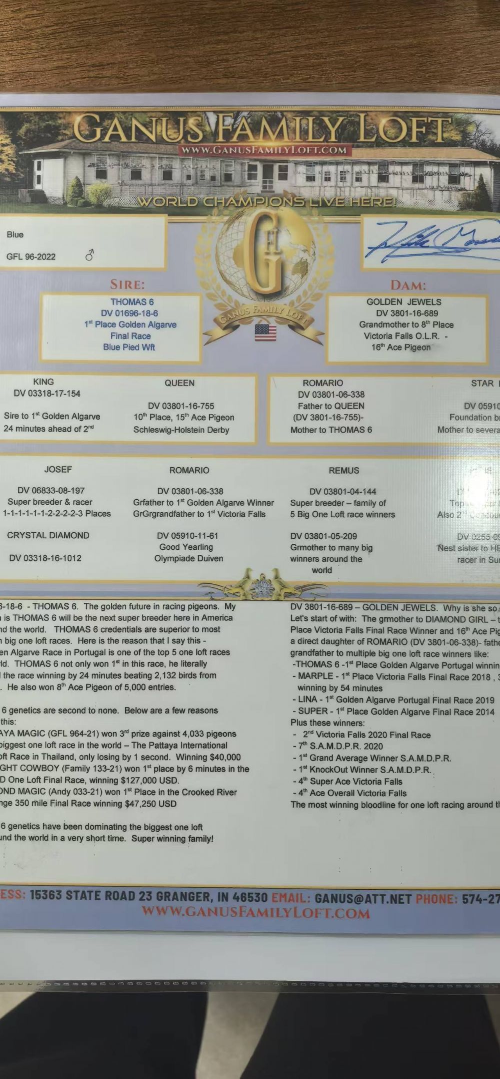 - 当前查看拍卖鸽:4.甘纳斯原舍.96