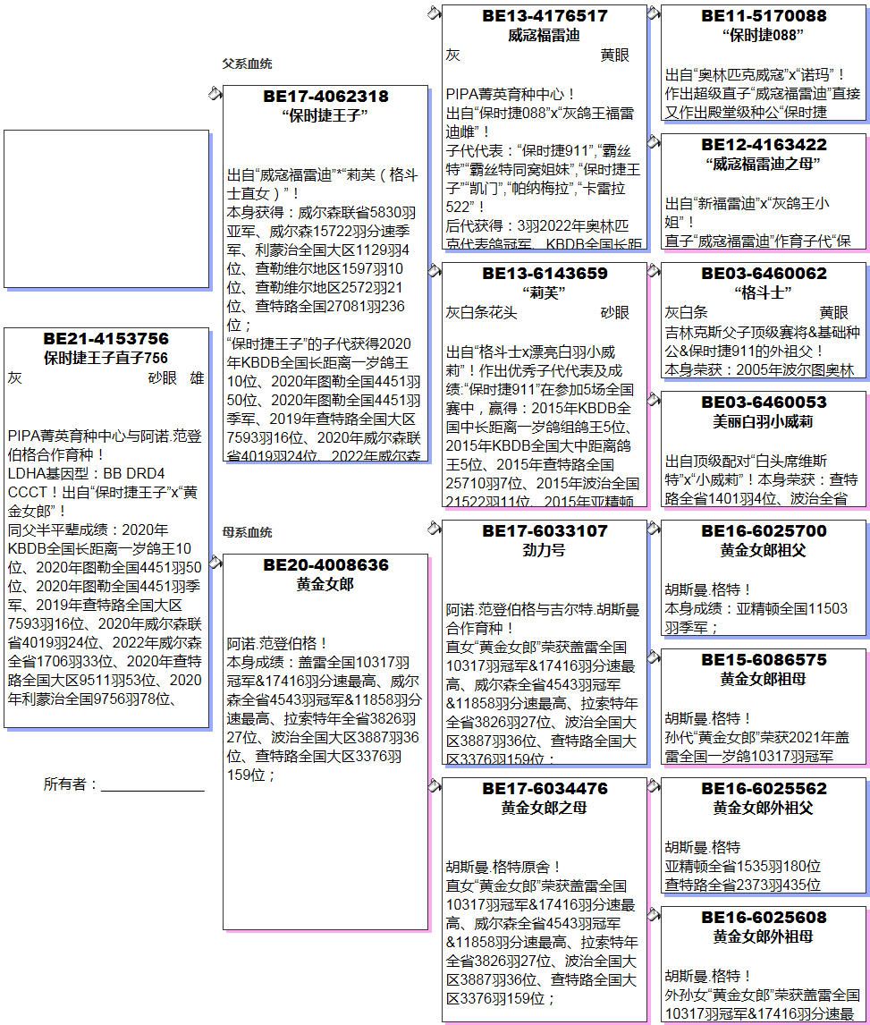 因拍卖鸽均是未做育过的种鸽或幼鸽,图内所标雌雄仅供参考,实际性别已实物为准。