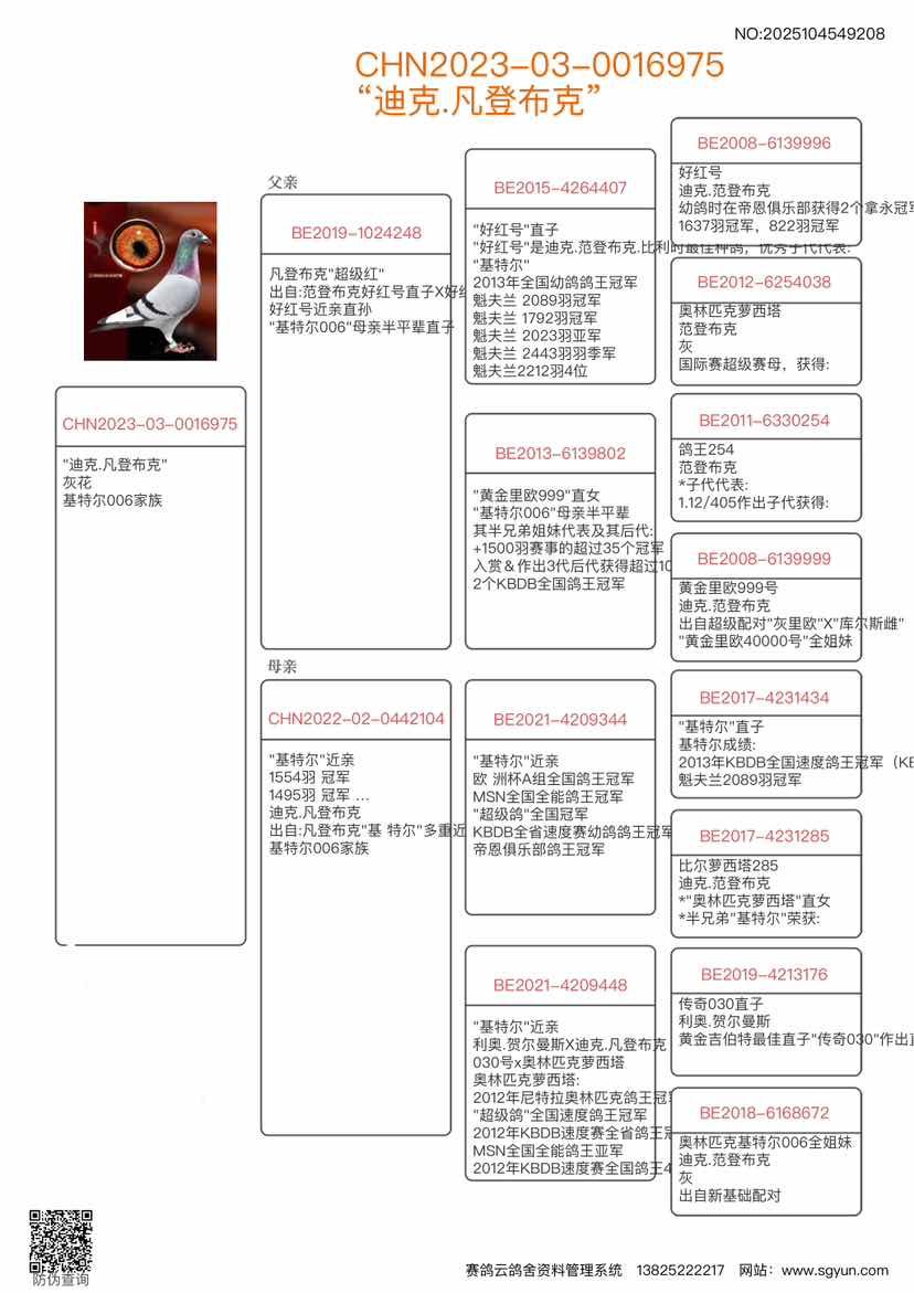 “好红号”是迪克.范登布克.比利时最佳种鸽,优秀子代代表: