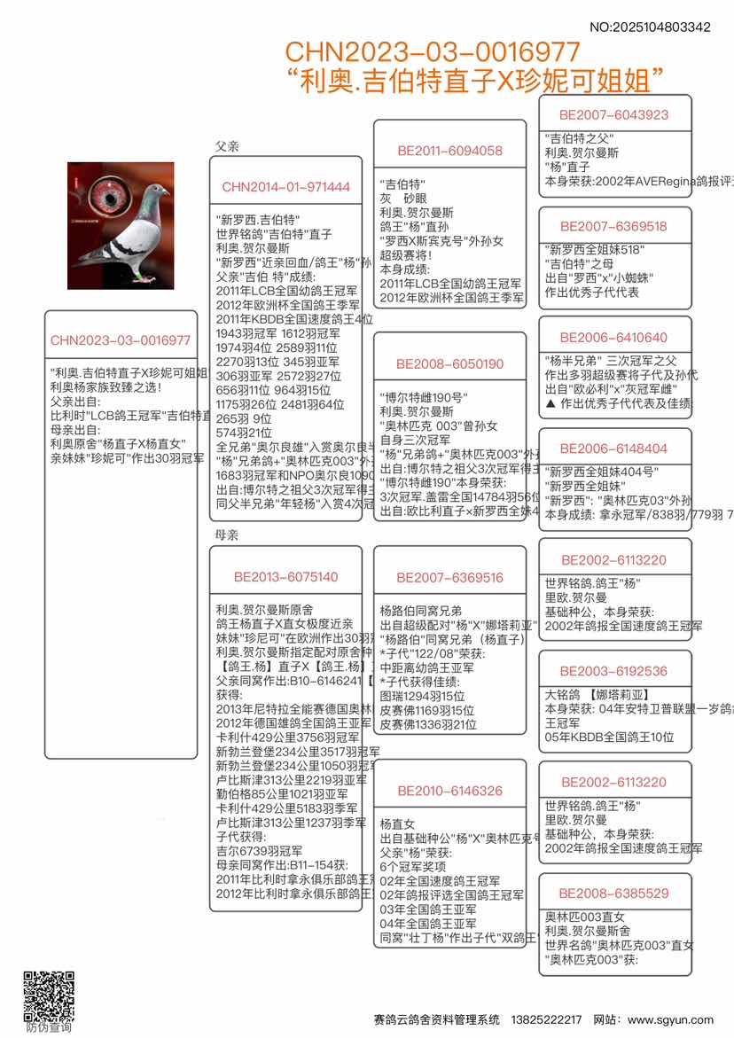 BE2002-6113220 世界铭鸽.鸽王“杨”
