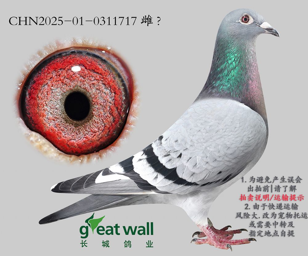 因拍卖鸽均是未做育过的种鸽或幼鸽,图内所标雌雄仅供参考,实际性别已实物为准。