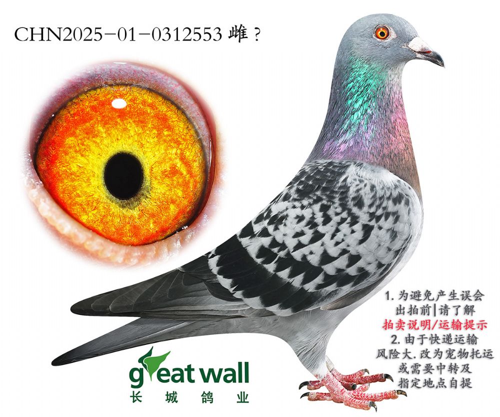 因拍卖鸽均是未做育过的种鸽或幼鸽,图内所标雌雄仅供参考,实际性别已实物为准。