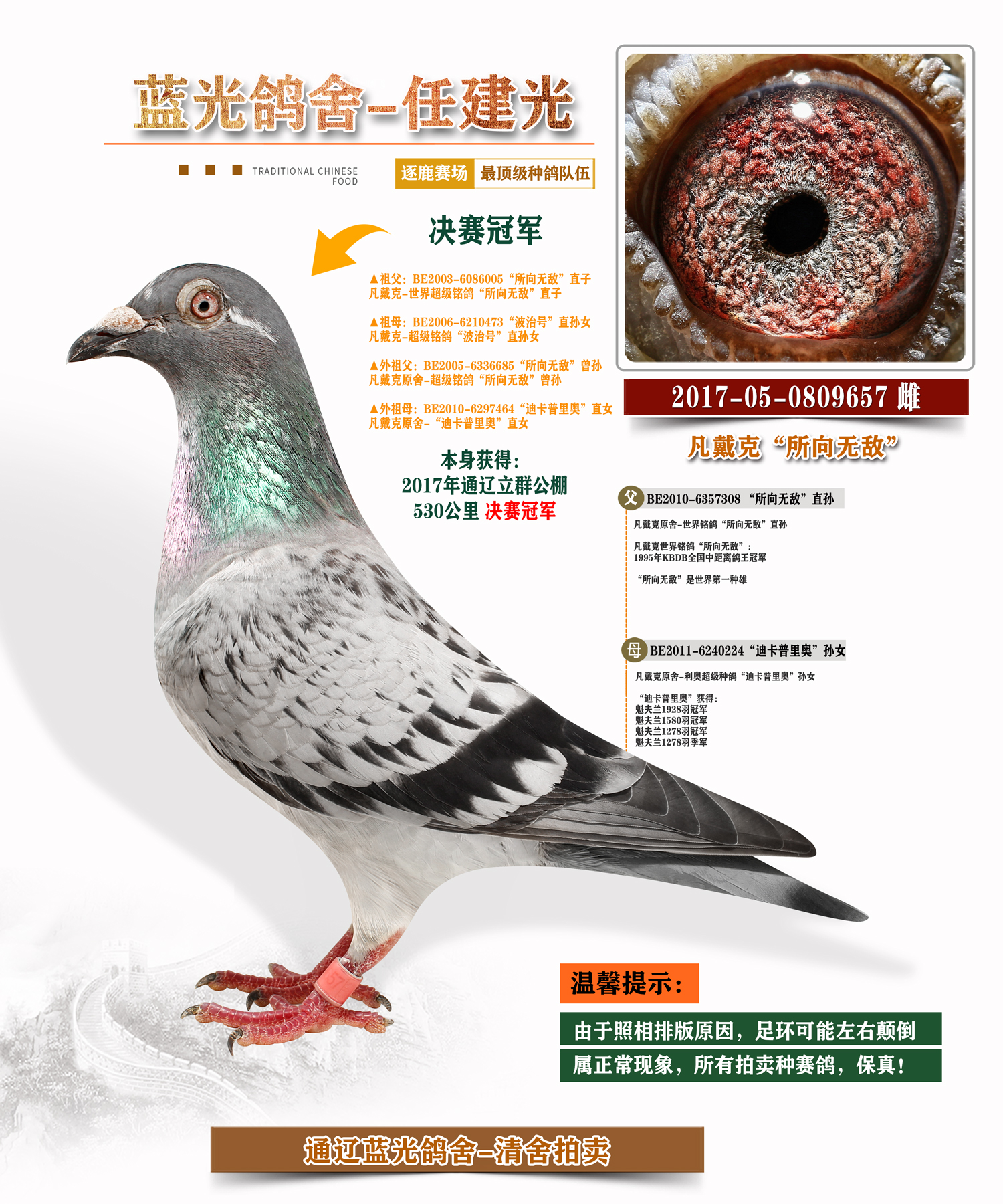 本次清舍,请各位鸽友一定不要错过,一定不要错过,种鸽阵容十分强大,国内外最顶级辈分,鸽主打了20多年比赛,常年征战各大赛场,成绩突出,真实可查,这里面都是最实站的鸽系,最优秀的种鸽,此次清舍的种鸽相信拿回去(百分之90)都能用出来,请您一定珍惜。