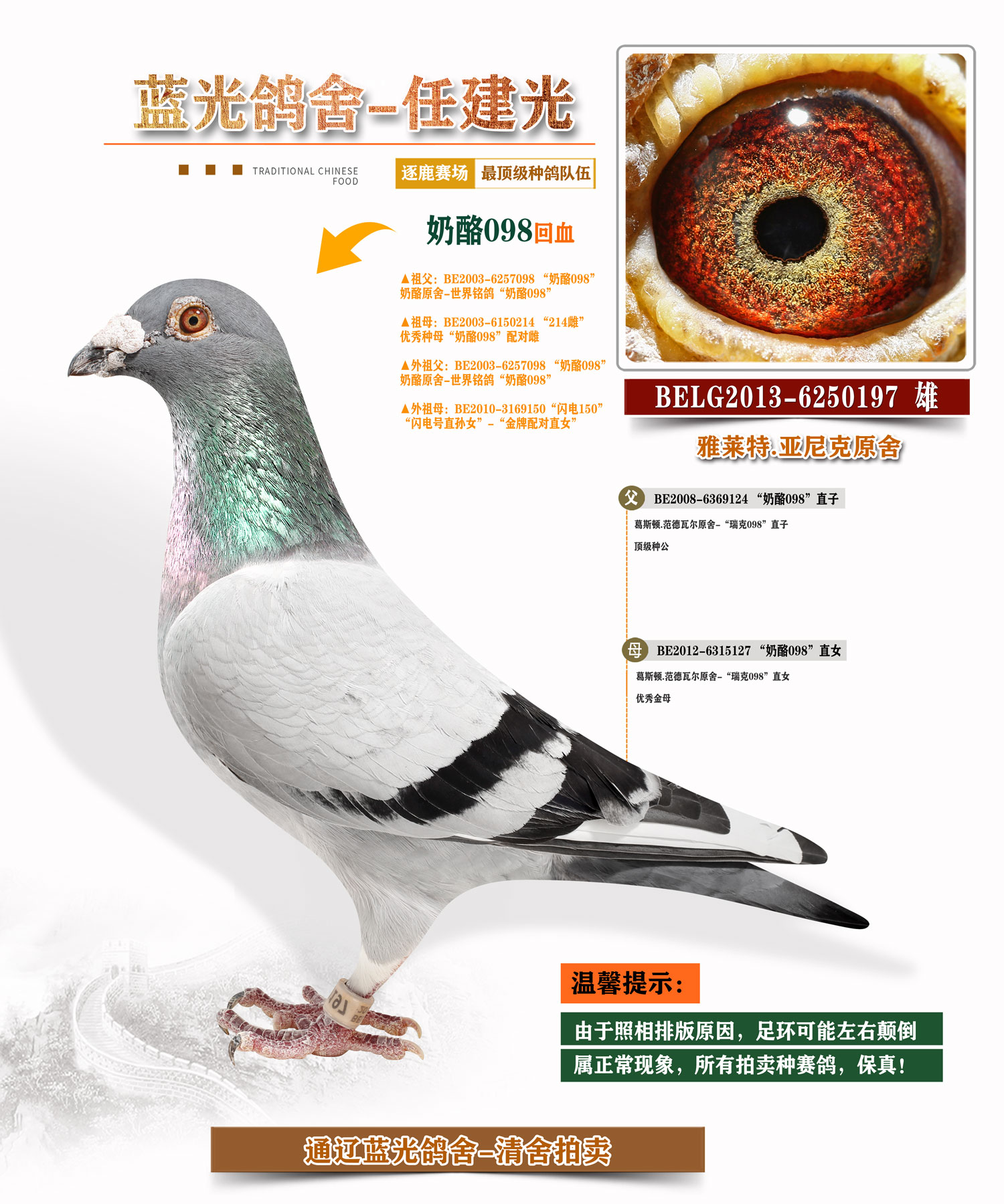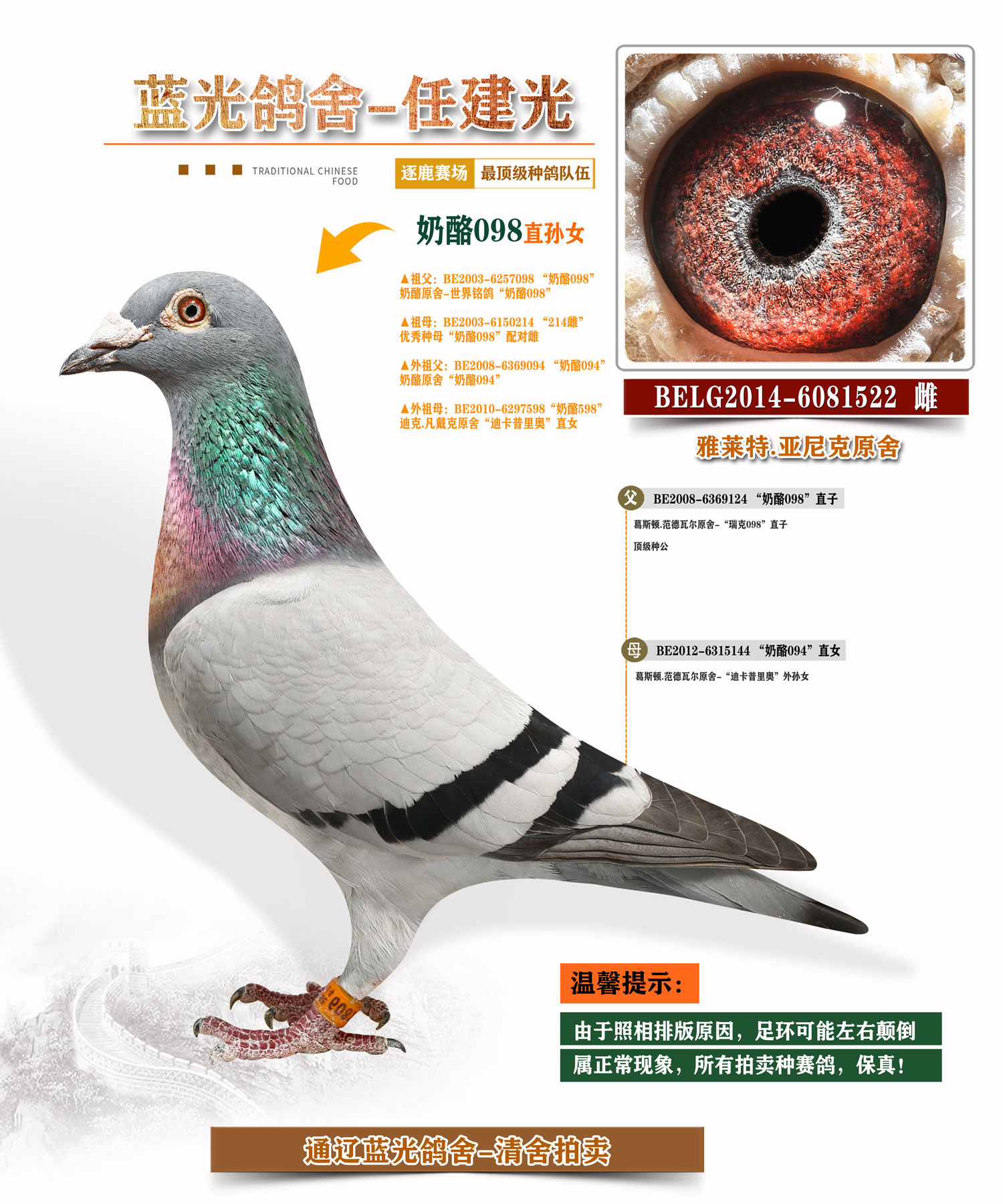 本次清舍,请各位鸽友一定不要错过,一定不要错过,种鸽阵容十分强大,国内外最顶级辈分,鸽主打了20多年比赛,常年征战各大赛场,成绩突出,真实可查,这里面都是最实站的鸽系,最优秀的种鸽,此次清舍的种鸽相信拿回去(百分之90)都能用出来,请您一定珍惜。