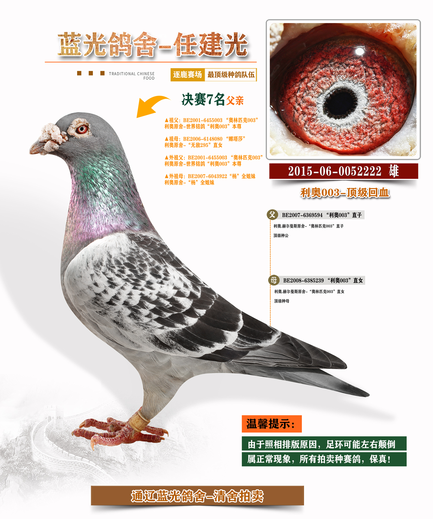 ------出价前,请先看拍卖专题的注意事项及鸽主历年赛绩简介-----