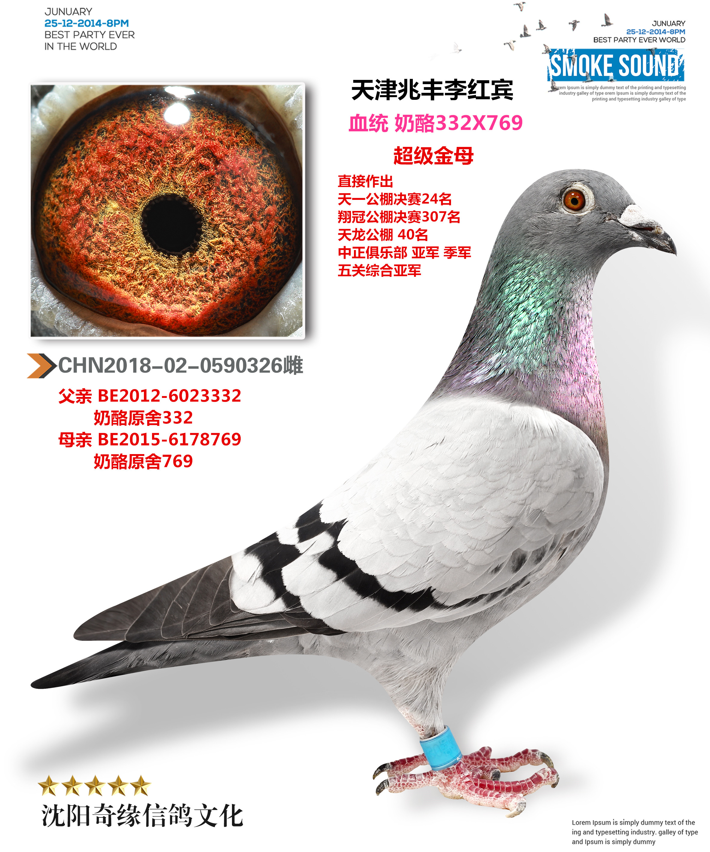 2、注明:鸽子在照片制作中,通常会使用Photoshop的图片翻转功能,造成视觉上足环位置的颠倒(左右脚互换),鸽子足环的位置以实物为准;