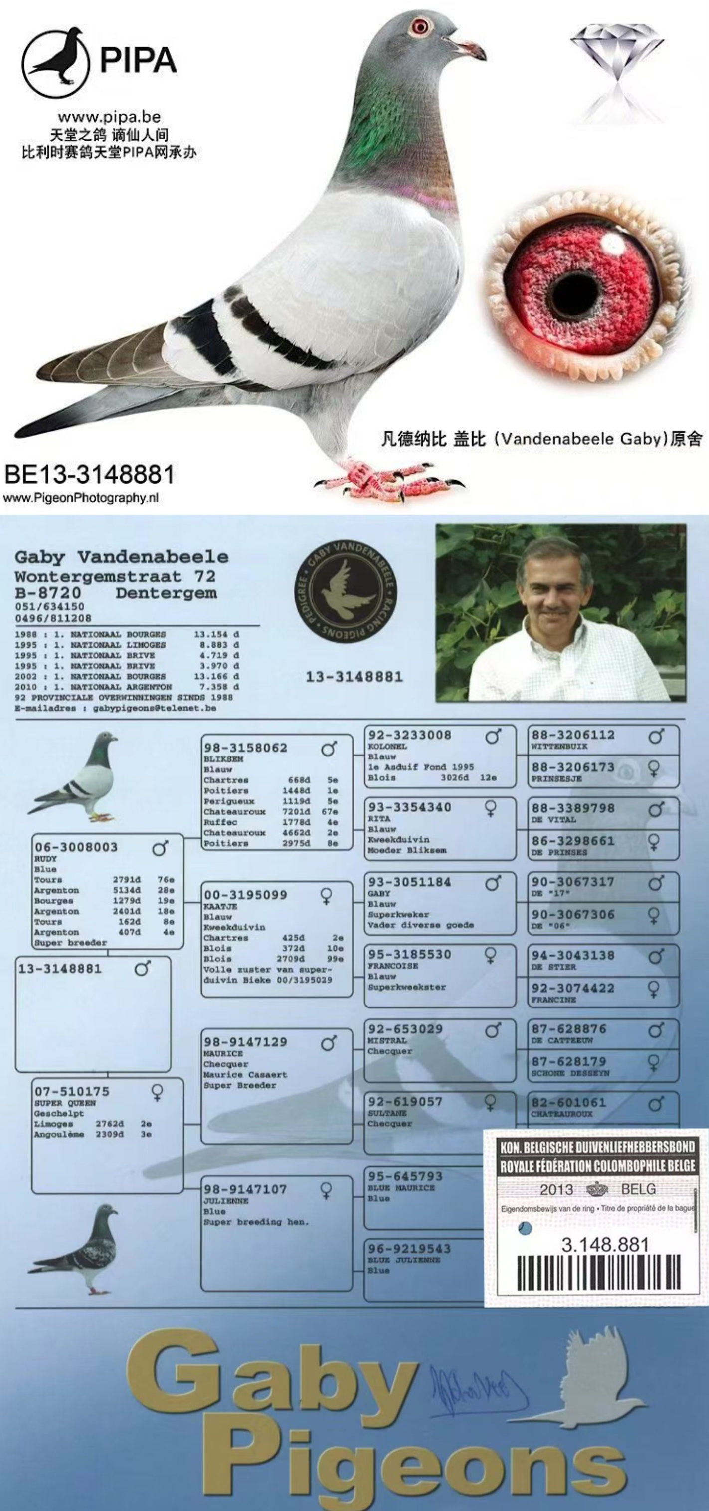血统鸽雌雄以本鸽为准,摄影师辨认和填写~!