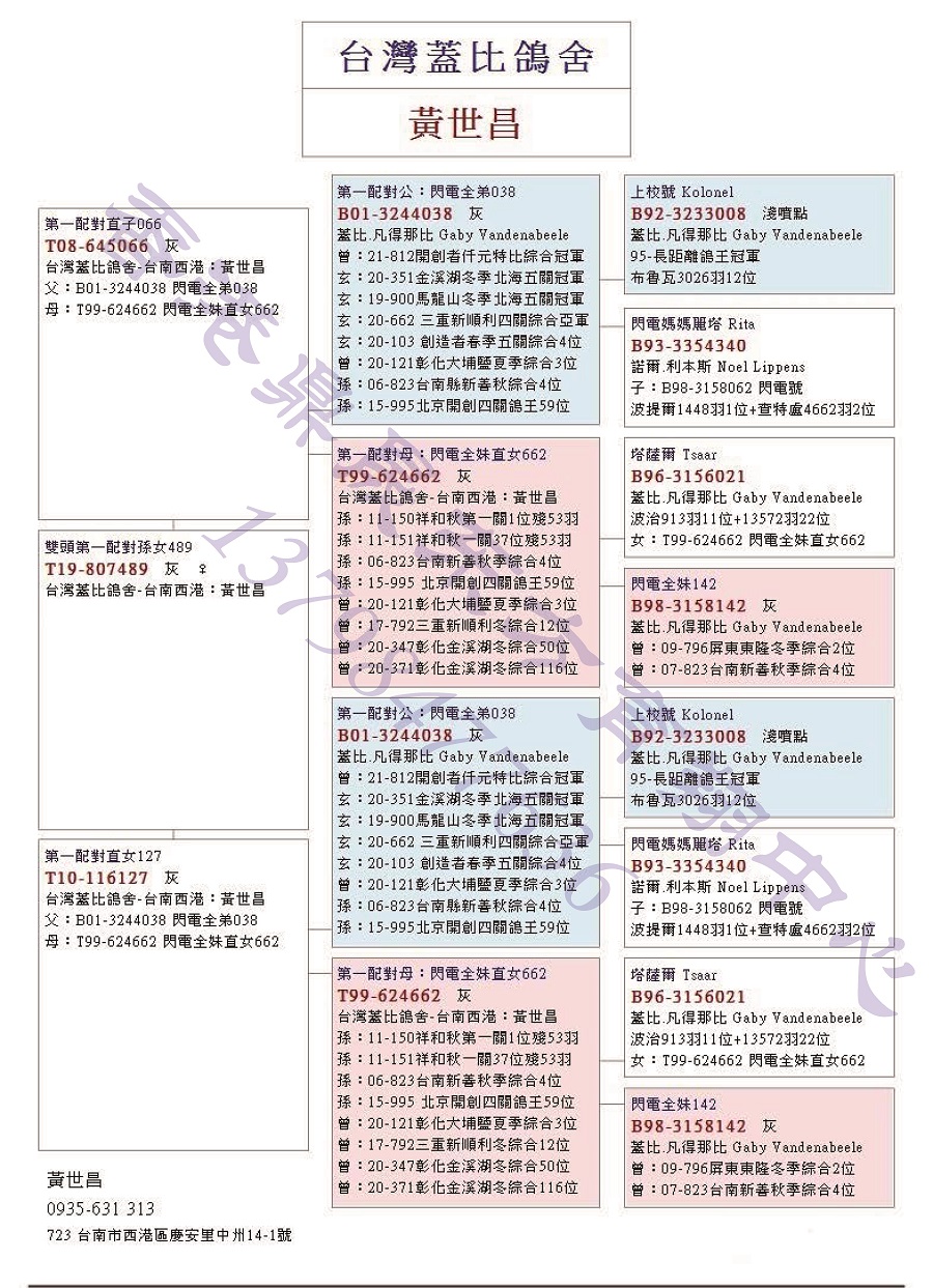 - 当前查看拍卖鸽:蓋比·凡得那比閃電孫(原舍)X黄世昌盖比