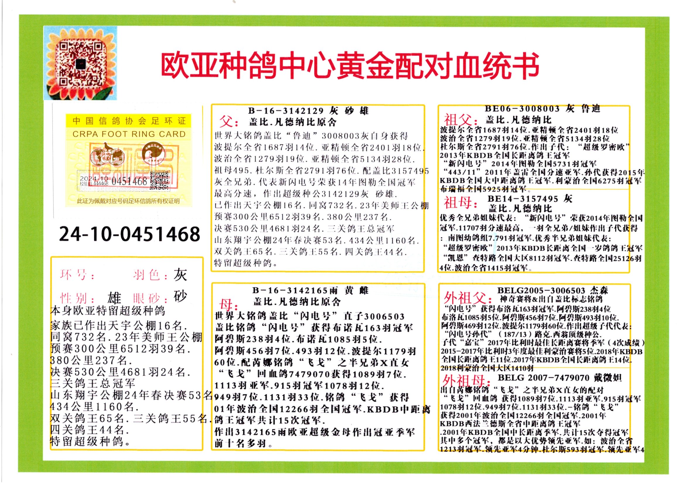 24年秋南京特比环欧亚荣获大团体冠军.小团体冠军551公里大特比13名.14名.16名.19名.20名.21名.24名.26名.27名.28名.42名.52名.54名.57名.65名.66名.68名.70名.71名.72名.74名.76名.80名.82名.83名.84名.85名.86名.90名.92名.110名.116名.121名.122名.128名.131名.158名.161名.164名.165名.166名.172名.174名.177名.182名.195名.196名.201名.205名.208名.210名.216名.253名.269名.275名.276名.294名.296名.299名,,24年秋云南天南铜都公棚决赛415名.天南铜都小棚决赛409名.云南玉活公棚决赛102名.490名.团体32名上笼二羽进二羽,天南铜都大棚506公里决赛445名。热烈祝贺河北省巨鹿县李兰生老师用欧亚泰山号血系连续十一年夺冠军,河北省国家赛冠军.全国季军等多次前十名高位,扬州王军王总用欧亚利奥24年春季获山东翔宇公棚决赛33名盖比53名。南京刘正龙刘总用欧亚盖比获得24年秋山东潍坊国际公棚决赛42名.精英赛30名.三关鸽王71名.决赛86名.加站赛16名.南京市特比环A组鸽王9名.B组鸽王5名.6名.C组鸽王5名.精英赛冠军4名.技能赛A组冠军4名.5名.秦淮区特比环荣获15名.46名.48名.87名。四川西昌徐亮徐总用欧亚利奥获得凉山州聚友决赛177名.第二关亚军双关鸽王19名.三关鸽王105名.云南豪庭公棚决赛603名。热烈祝贺24年四川重庆翔园鸽舍用欧亚泰山号荣获春季400公里冠军.秋季500公里冠军,河北王总用詹森X利奥获得千羽千翔公棚400公里冠军,广东蔡楷焕荣获24年秋爱好者 赛鸽俱乐部三关鸽王季军.一关420公里99名.二关450公里11名.三关520公里32名.单关季军.7名.12名,江西李卫兴荣获贵州红枫公棚8名.共翔俱乐部寄养棚四关综合鸽王30名.一关400公里78名.二关500公里55名.三关520公里37名.四关500公里57名.同父母获公棚18名.雷鸣获得武汉黄浦育翔中心冠军,四川陈文获得四川明鸿俱乐部300公里梦幻2名.3名.4名.9名.10名.13名.14名.15名.31名.34名.40名.41名.42名.43名.69名.71名.72名.73名.74名.94名.95名.97名.98名.99名.419公里决赛荣获总冠军7名.总共归巢9羽,四川徐亮获豪庭决赛603名,山西郑勇获得山西泰鑫公棚决赛255名詹森红狐,热烈祝贺马总获得开尔(飞跃队)决赛9名获奖金1310000万元.第一关52名,天津津福资赛180公里96名.获奖金429543万元,欧亚支持全国鸽友24年秋多人报喜 祝大家取得更好成绩,给欧亚报喜鸽友欧亚决定给每人赠送一羽超级种鸽。欧亚俱乐部特比环多关鸽王成绩:15年秋淮安特比环黑色星期一全会上笼9700多羽,当天无鸽归巢,第二天全会归巢357羽,本舍归巢158羽.前十名八羽.前一百名归巢57羽,16年春季获五关鸽王总冠军,总亚军四名.六名.七名.九名.十名.晶艺俱乐部520公里冠亚季军5名.6名.7名.9名.11名等,火车头冠军.季军6名.8名.9名.10名,16年秋晶艺俱乐部特比环520公里亚军.季军4名.6名.7名.9名,15年春南京白下特比环冠军.亚军.季军6名.7名.8名.9名.10名.指定鸽A B组获得冠军.亚军.季军4名.5名.,17年淮安特比环亚军.4名.5名.7名.8名.10名.六关鸽王总冠军.4名.6名.9名.10名,寄养棚宿迁刘总20羽特比环获冠军.季军.4名.7名.8名.9名等。18年荣获万羽特比环六关鸽王总冠军.总亚军.总季军.6名.8名.十名.单关四羽冠军.二羽亚军.四羽季军.前十名27羽。19年秋万羽特比环六关鸽王总亚军.总季军.5名.8名等,单关二羽冠军.三羽亚军.一羽季军前十名31羽。20年秋淮安市鸽会四关特比环大赛风雨无阻鸽王亚军.鸽王六名,金品俱乐部万羽特比环六关鸽王总冠军,总亚军.四名.五名.六名.七名.八名.十名.前二百名鸽王35羽,单关冠亚季军前十名四十多羽,火车头五关鸽王季军.六名.八名.前二百名鸽王十七羽。20年春荣获淮安五区一市四关鸽王总冠军.亚军.四名.八名.九名。21年秋荣获金品万羽特比环大赛六关鸽王总亚军.总季军.四名.七名.九名.十名.单关冠亚军季军前十名三十多羽。火车头协会鸽王六名.七名.十名.单关前十名十七羽。22年秋荣获鸽王总冠军.总亚军.5名.7名.8名.9名.11名.单关冠亚季军前十名三十多羽,第一关单关前二百名四十多羽,第二关前二百名三十多羽,第三关前二百名四十多羽,第四关前二百名四十多羽,第五关前一百名53羽。23年秋荣获鸽王季军.五名.八名.十名.13名.17名.20名.27名等多羽鸽王.单关前十名二十多羽。公棚.寄养棚部分成绩:16年秋宁夏黄河公棚总冠军电脑戈马力指定通炮冠军,17年送八羽参赛获得鸽王八名进奖四名,支持韩总荣获八名。支持鸽友荣获宁夏中卫公棚决赛总冠军.精英赛冠军,支持18年宁夏黄河公棚决赛冠军詹森X泰山。安徽鼎博寄养棚院内外四关鸽王总冠军.鸽王十七名.三十七名同窝,鸽王39名.42名.58名.67名。18年山东公棚预赛冠军.决赛65名.送八羽进奖五羽.指定获奔驰汽车一辆。支持鸽友获得云南蓝云公棚冠军.盖比X佛卡门。支持鸽友荣获云南银集公棚决赛冠军 詹森427X520血系 速度赛6700羽冠军。17年荣获金马俱乐部寄养棚四关鸽王总冠军.季军.六名.八名.第一关冠军.亚军.季军四名.七名.十一名.金牌教练奖。支持鸽友18年北京费翔公棚预赛九名电脑X桑杰士,支持鸽友荣获陕西威力公棚决赛11名.内蒙古临河寄养棚四关鸽王六名.詹森配泰山,支持河北王总用欧亚詹森427配胡本喜获20年秋开尔青年棚季军。云南东荣公棚16年预赛冠军.决赛77名.17年决赛12名.詹森红狐X泰山,17年平安公棚决赛4名 詹森427。欧亚获得21年金母寄养棚第一关四名.第二关5名.第三关5名.6名.7名.10名.三关鸽王总冠军,四关鸽王14名.十羽鸽王。支持河