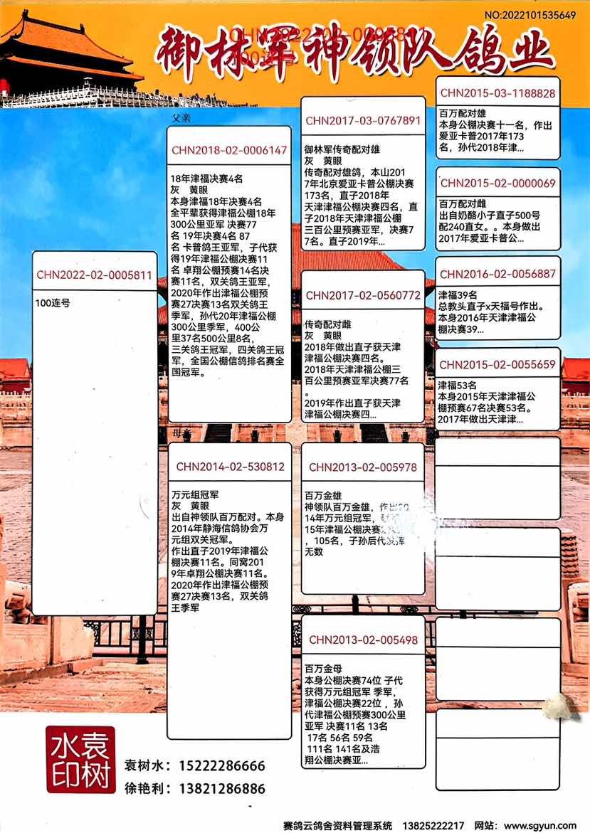 - 当前查看拍卖鸽:御林军津福4名X百万配对811