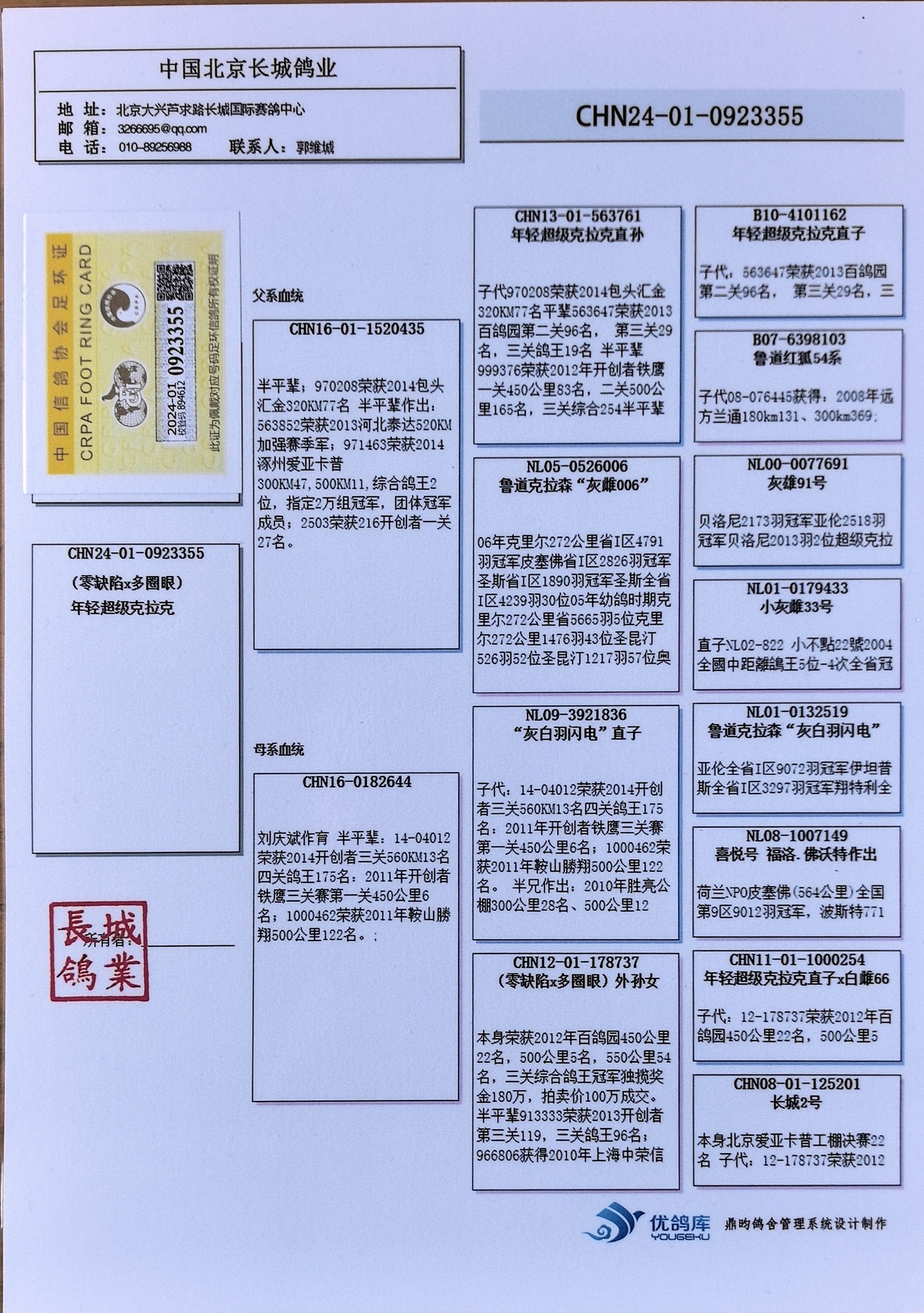 仅接受来自可信赖、有持续实战记录的鸽源。2.血统核验: