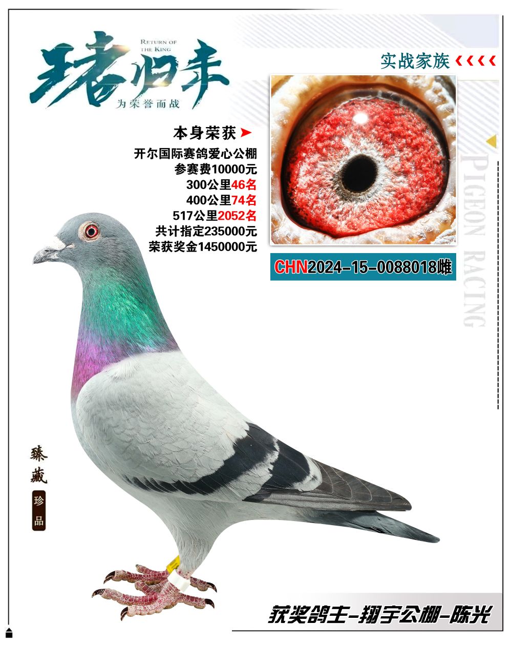 本身开尔国际赛鸽爱心公棚400公里74名