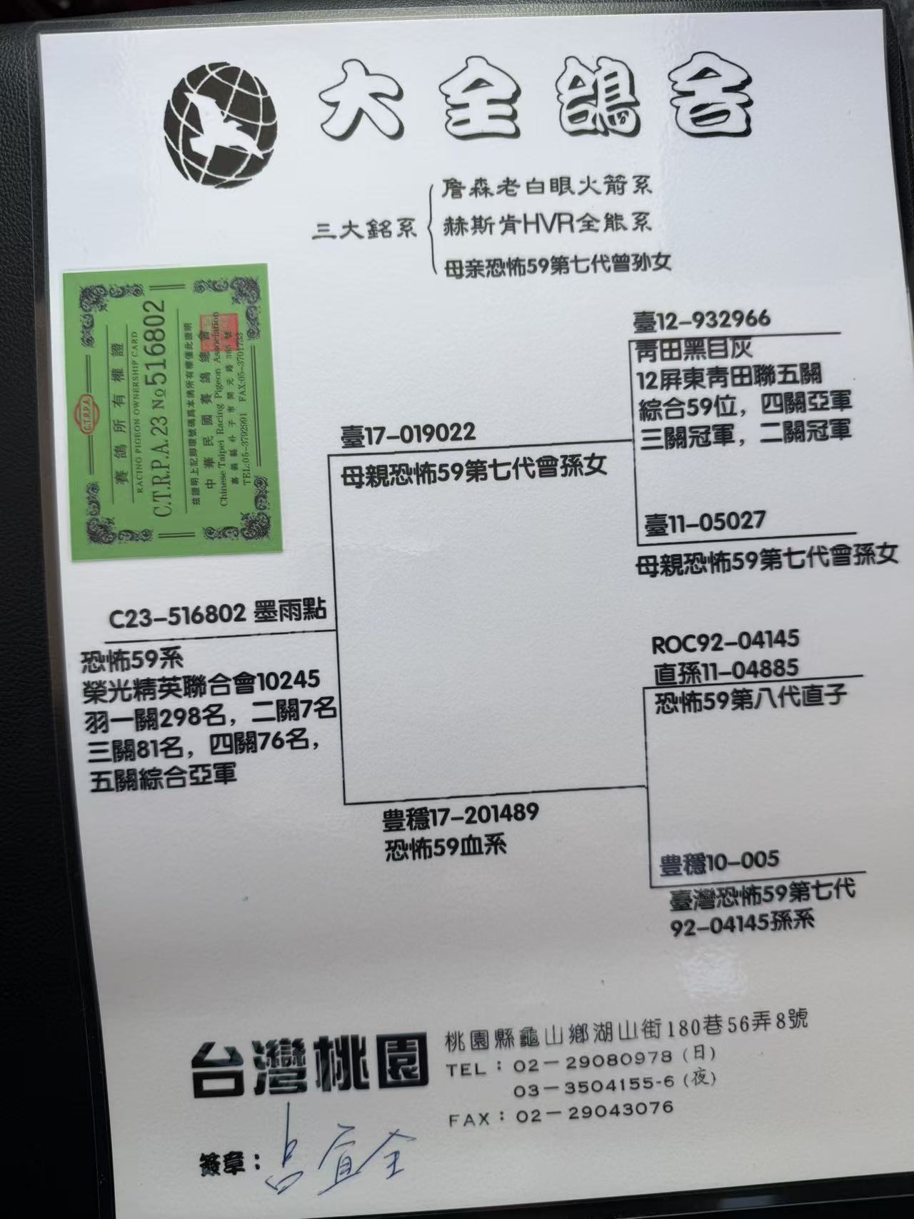 - 当前查看拍卖鸽:台湾大全鸽舍”恐怖59系“ 本身荣获五关
