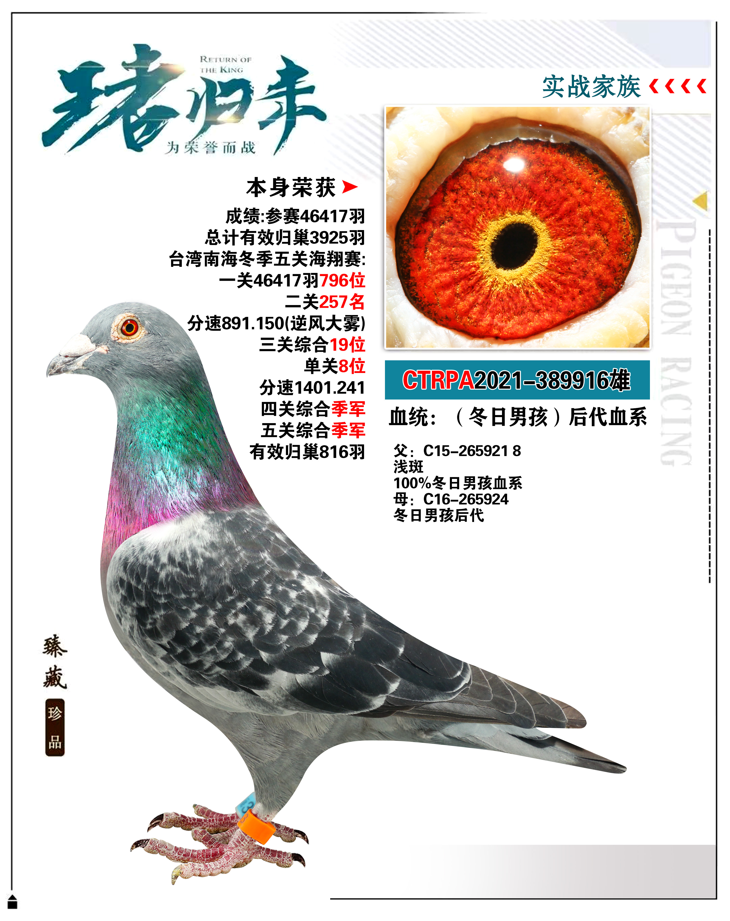 - 当前查看拍卖鸽:台湾海霸王詹森研究中心“冬日男孩”后代