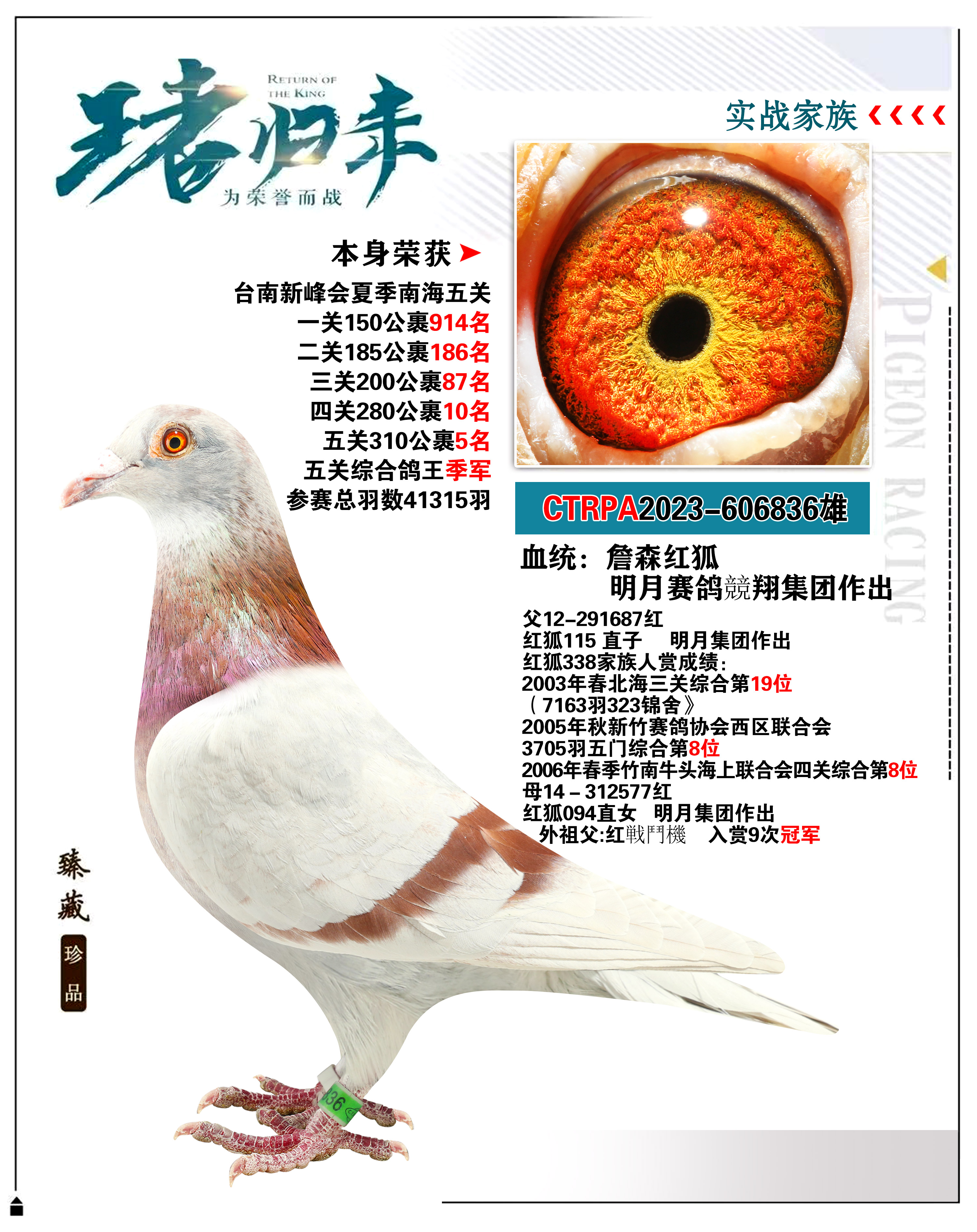 - 当前查看拍卖鸽:台湾明月赛鸽集团作出”詹森红狐“ 本身五