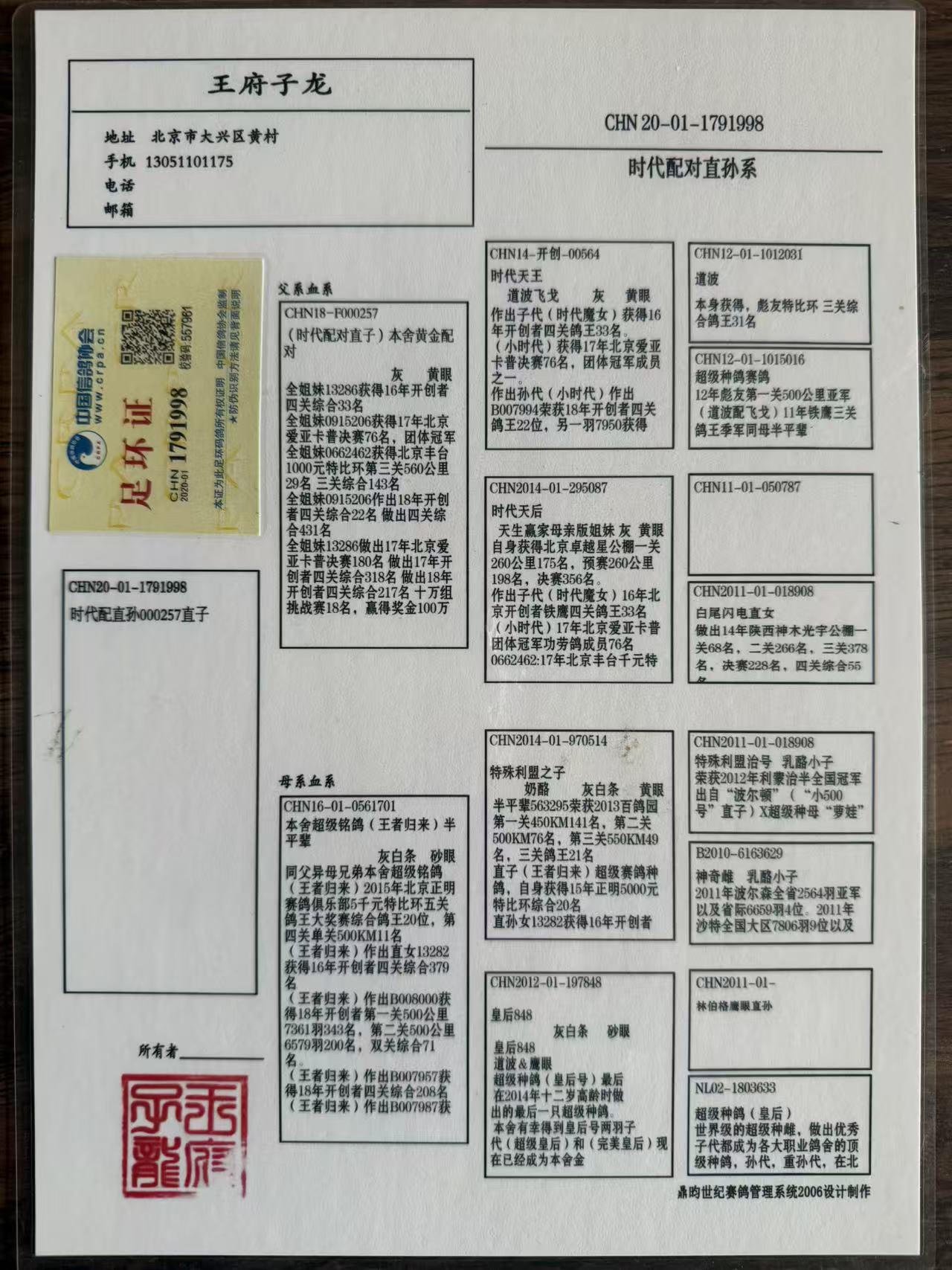 - 当前查看拍卖鸽:北京王府子龙作育”时代配直孙000257