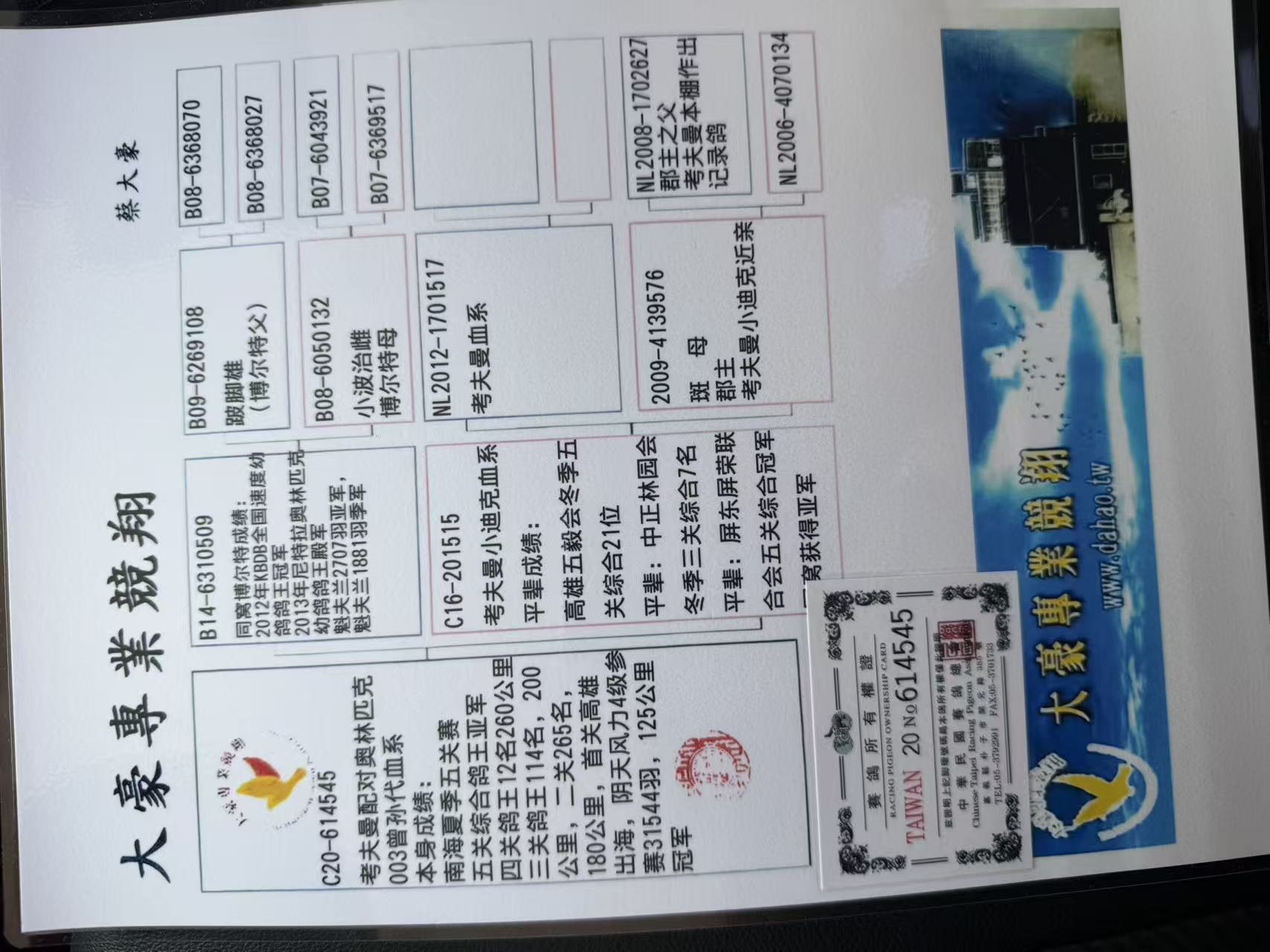 - 当前查看拍卖鸽:台湾大豪专业竞翔”考夫曼配对奥林匹克00