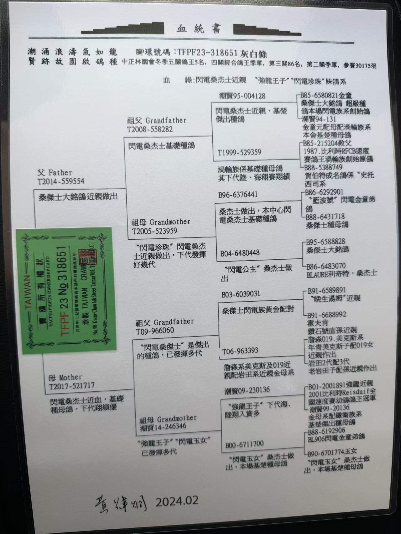 - 当前查看拍卖鸽:台湾黄肆烔“闪电桑杰士近亲” 本身鸽王季