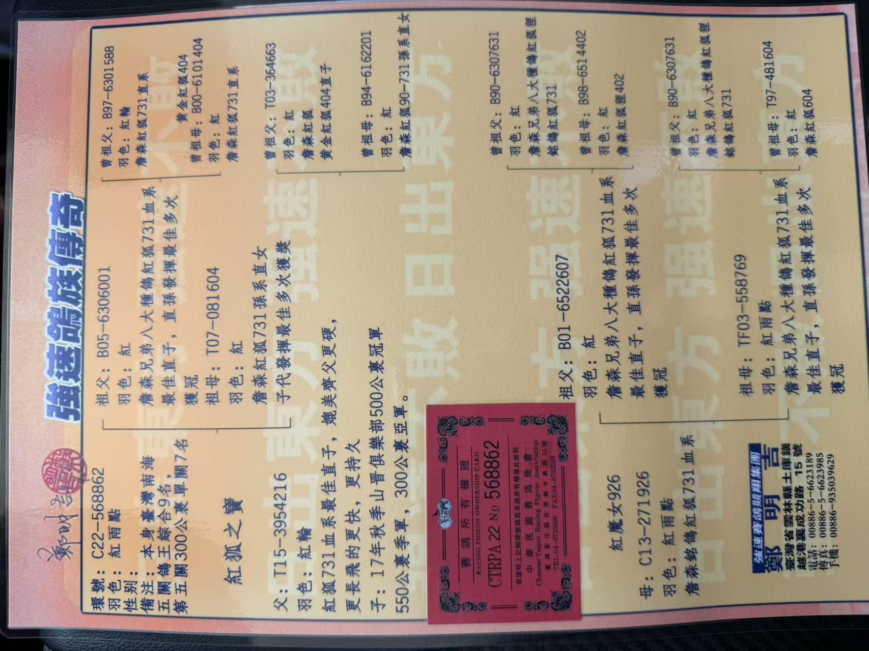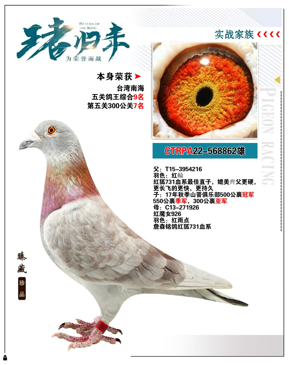 - 当前查看拍卖鸽:台湾强速鸽族“红狐” 本身五关综合9名